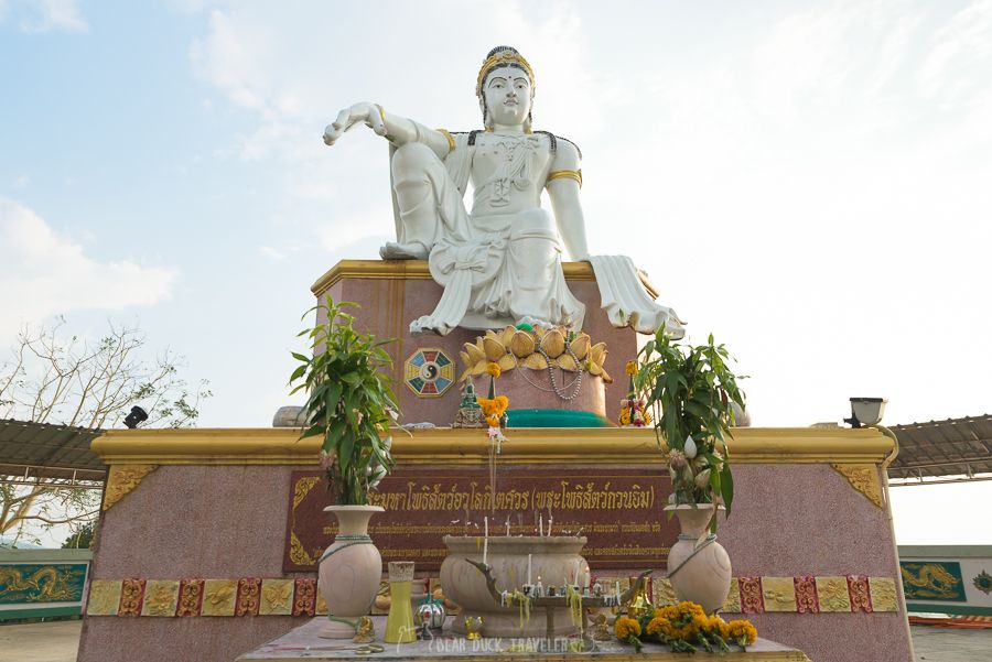 จุดชมวิวที่มีชื่อเสียงของจังหวัด มีโพธิสัตว์อวโลกิเตศวรประดิษฐานอยู่ด้านบน สามารถมองเห็นปากน้ำชุมพรและเวิ้งอ่าวโดยรอบได้ชัดเจน มีวิวพระอาทิตย์ที่ตกสวยไม่เป็นรองใคร ร้านอาหารราคาไม่โหดนัก แถมมีไก่มีแมวให้อาเจ้เล่นด้วย