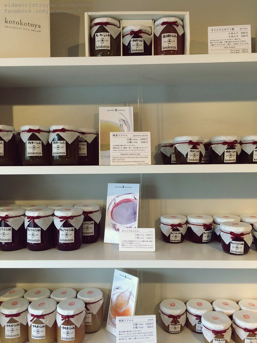 อัีกของหวานๆหนึ่งที่ค้นพบแบบไม่ได้ตั้งใจ คือแยม เนื่องจากเพื่อนร่วมทริปนามว่า แอร์ เป็นคนชอบกินแยม ก็เลยนำพาให้เพื่อนคนอื่นๆได้แวะเวียนเข้าร้านแยมชื่อ Kotokotoya ร้านจัดได้น่ารัก มีหิ้งวางขวดแยมที่จัดจำหน่าย ตรงกลางร้านมีโต๊ะที่มีแยมพร้อมขนมปังให้ลองป้ายชิม ส่วนคุณป้าผู้ขาย ก็ยืนนิ่งๆ อยู่หลังเคาน์เตอร์คิดเงินไม่ไกลนัก ปล่อยให้เราลองกันให้เต็มที่เลย