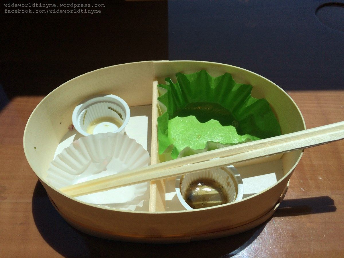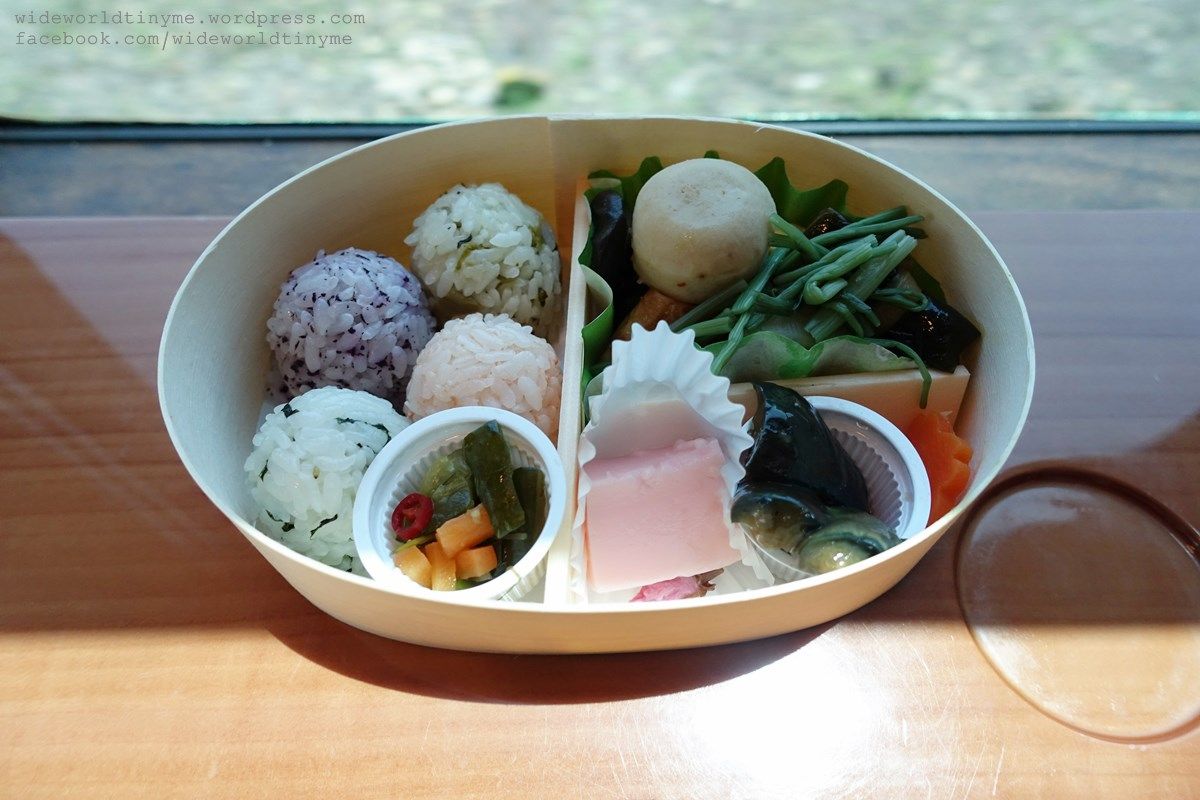 สิ่งหนึ่งที่ใครมาขึ้นรถไฟของญี่ปุ่นไม่ควรพลาดก็คืออาหารเบนโตะที่ขายบนรถไฟ สำหรับป่าเขียวเคลื่อนที่นี้ก็มีอาหารกล่องที่เขาว่ากันว่าเป็นที่ชื่นชมของสาวๆ พวกเราก็ย่อมไม่พลาดแน่นอน แล้วก็ขอบอกว่า อร่อยจริงๆ แถมให้ความรู้สึกว่ากินของดีต่อสุขภาพด้วย ทั้งอร่อยและเฮลท์ตี้ ไม่แปลกใจว่าทำไมสาวๆถึงชอบกัน สนนราคาข้าวกล่องนี้ 720 เยน (รวม Tax แล้ว)
