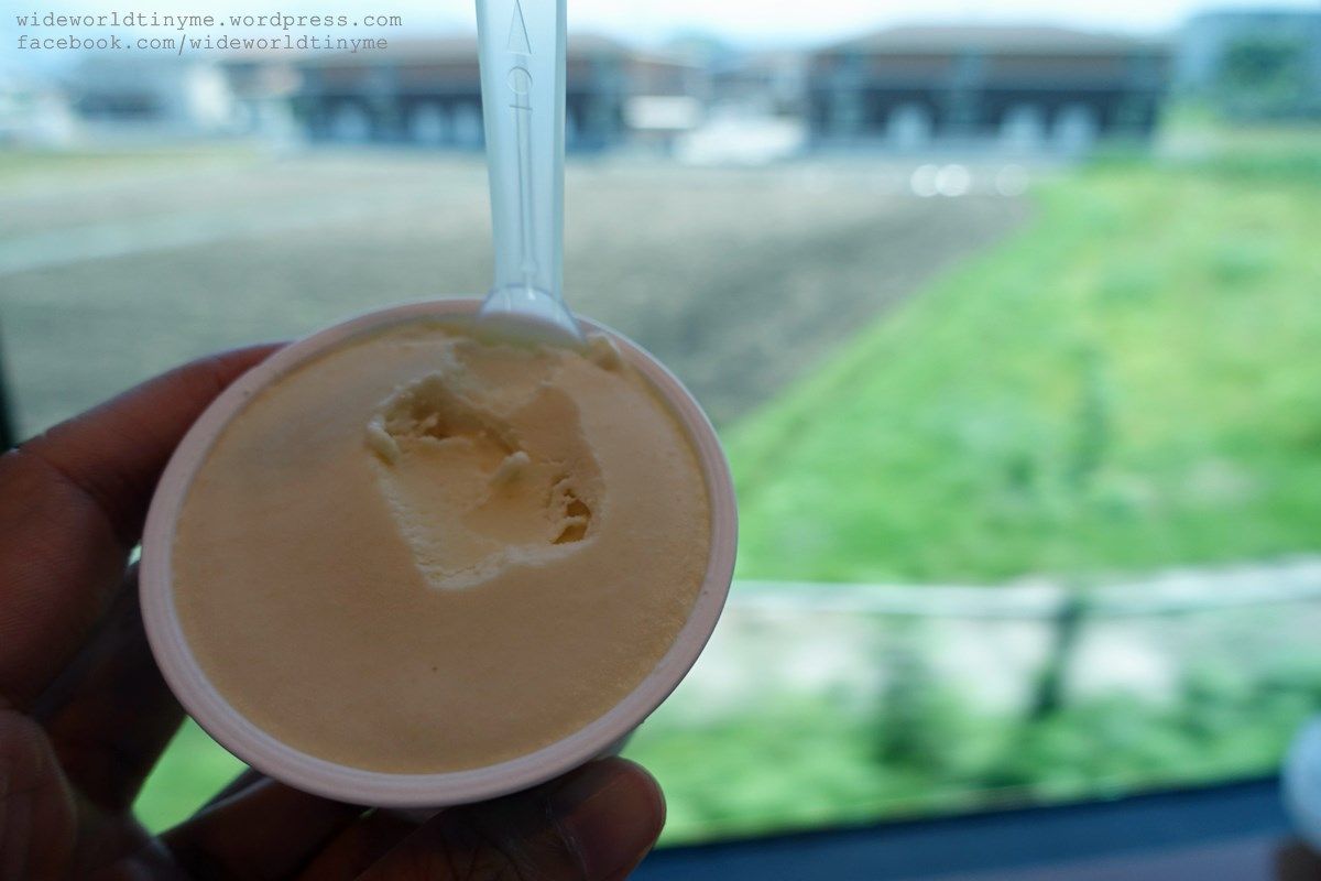 จริงๆในข้าวกล่องก็มีของหวานให้กินอยู่แล้ว แต่จากที่พวกเราหาข้อมูลมา เขาบอกว่าให้ลองไอศครีมเตถั่วเหลืองหรือเต้าหู้ด้วย พวกเราเลยซื้อกันมาหนึ่งถ้วยแล้วแบ่งกันชิม ราคาก็ 310 เยน (รวม Tax แล้วเช่นกัน) แต่ด้วยความเข้มข้นแบบสุดๆของถั่วเหลืองหรือเต้าหู้นี่แหละ พวกเราเลยไม่ค่อยถูกปากกันเท่าไร