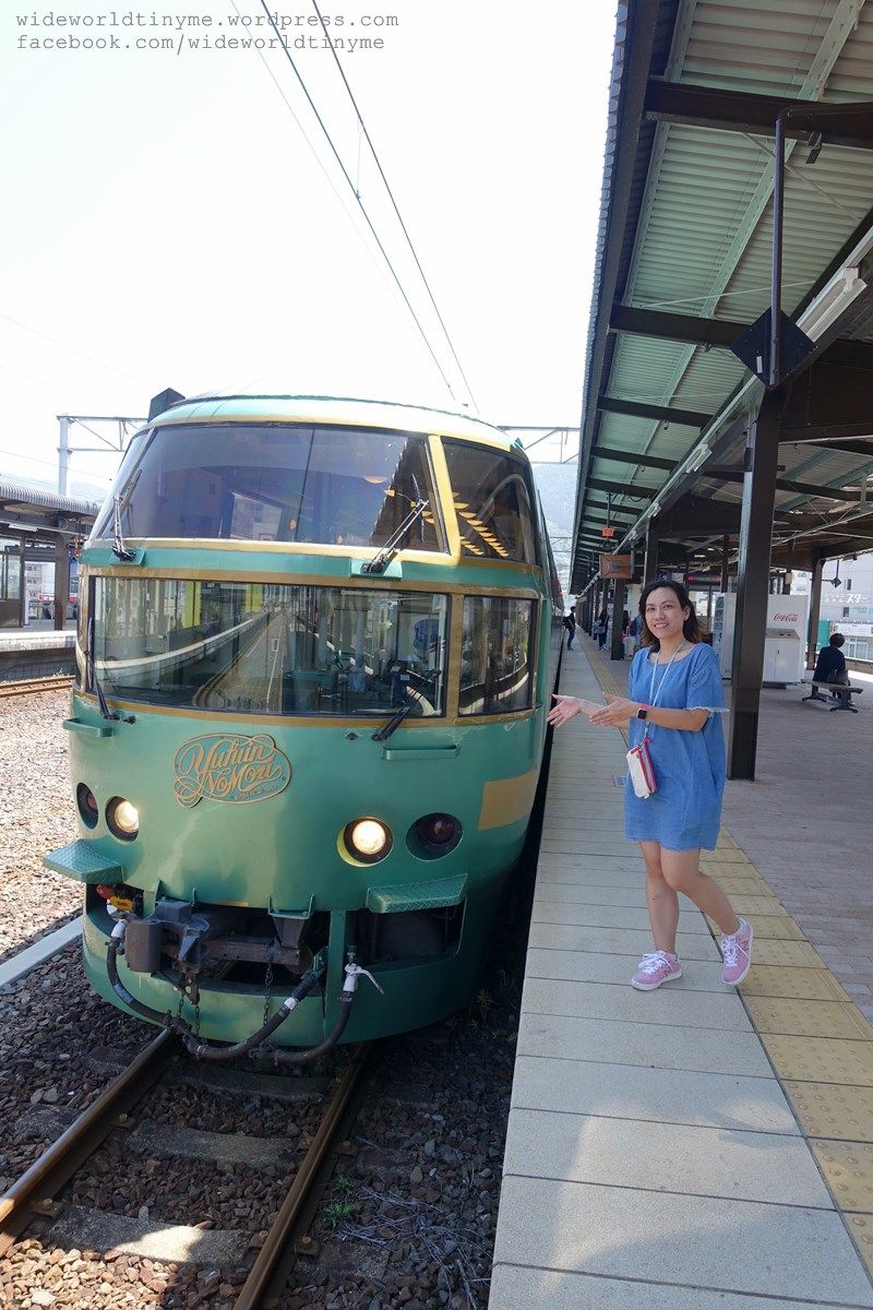 ฉันจำไม่ได้นะว่าเขาได้พูดถึง Yufuin no Mori ไหม ฉันรู้เพียงแต่ว่านี่เป็นหนึ่งในรถไฟที่พวกเราเล็งไว้ว่าต้องขึ้น ซึ่งจริงๆตามแผนแรกเราควรจะได้นั่งรถไฟสายนี้จากฟุกุโอกะมาที่ยูฟุอิน แต่ด้วยเหตุที่เขามีการนำรถไฟขบวนอื่นมาวิ่งแทนในช่วงเดือนที่เขากำหนดไว้ ทำให้เราพลาดการนั่งเจ้านี่จากฟุกุโอกะ แต่เราก็ไม่ยอมแพ้ เพราะ Yufuin no Mori นั้นเดินทางจากฟุกุโอกะแล้วไปสุดสายที่เบปปุ ซึ่งเป็นหนึ่งในจุดหมายที่เราจะไปต่อนั่นเอง เราจึงเปลี่ยนแผนมานั่งป่าเขียวเคลื่อนที่ไปเมืองนรกอย่างเบปปุแทน