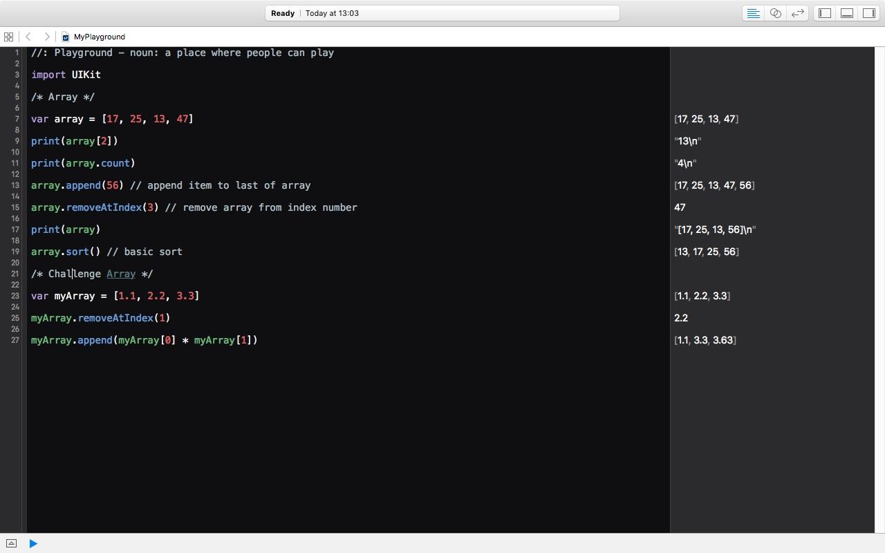- การสร้าง array บน Swift สามารถสร้างได้โดย var array = []