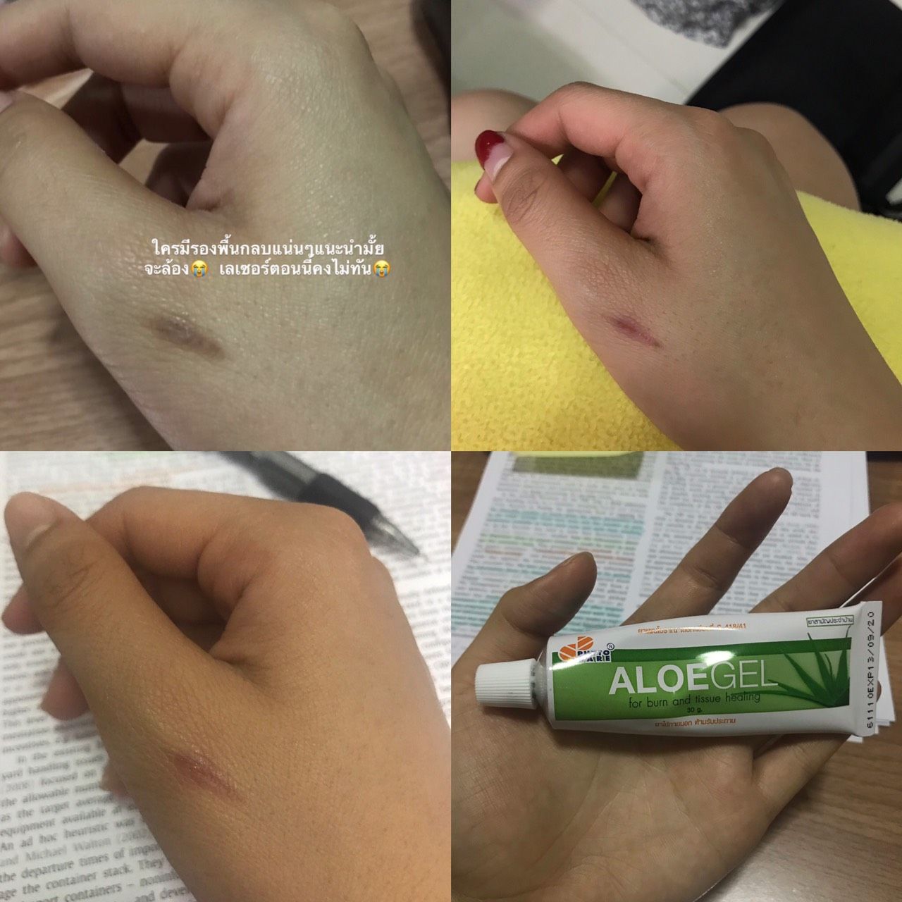 ที่ตลกร้ายคือเราเพิ่งได้รอยแผลเป็นรอยใหม่มา ได้สดๆร้อนๆวันเดียวกับที่เรารู้ข่าวการรับสมัครแอร์การ์ต้าที่กระบี่เลย เรารีดผ้าละโดนมือฮืออ แต่คิดว่าจะยอมแพ้มั้ย ก็ไม่5555 เรารีบไปหายาทั้งหลายแหล่มาทา ซึ่งมันก็ดีขึ้นมากๆ เราใช้ยา Aloe Gel ทาก่อน พอดีขึ้นก็ทารอยแผลเป็นด้วย Hiruscar Silicone Pro ทาทุกวัน ทุกครั้งที่นึกได้จนรอยจางลงมากๆ เรามีฝึกเอื้อมแตะกับผนังที่บ้านบ้าง แต่ไม่ได้ทำทุกวัน (ชิวมากเลยอ่ะ) และที่ขาดไม่ได้ คืออ กดซื้อตั๋วไปกระบี่พร้อมจองที่พักที่โรงแรม Devana Plaza พร้อมกับสมัครแอร์ในเว็บไซต์เหมือนเดิมม