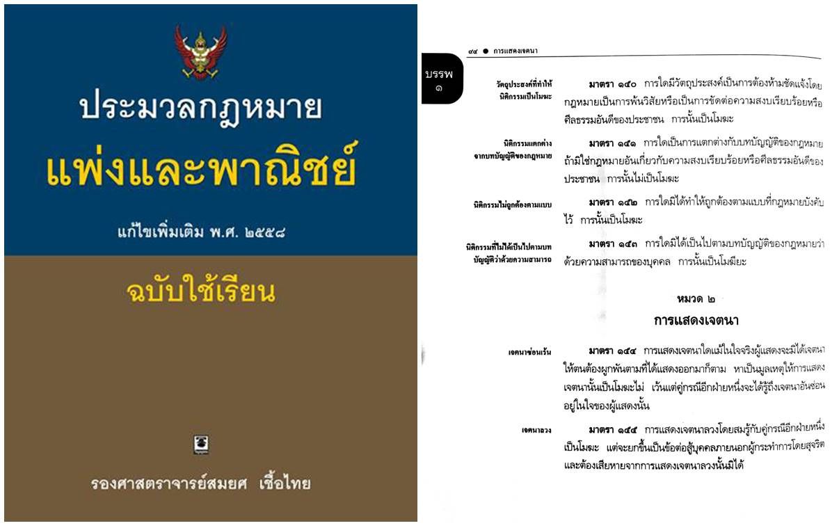 1. ประมวลกฎหมายแพ่งและพาณิชย์ 2. ประมวลกฎหมายอาญา