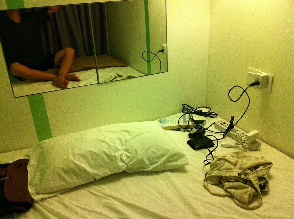 400 บาท กับห้องนอนรวม มีน้ำร้อน ไวไฟฟรี แอร์ และ ที่นอนแบบมีม่านปิด นับว่าไม่แย่อะไรนัก