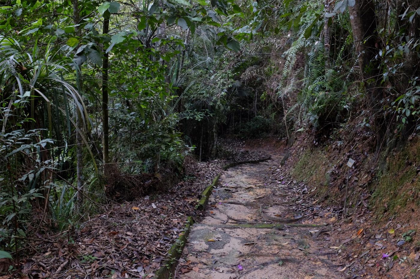 ถนนเส้นนี้ตัดเข้าไปในป่า เป็นทางคอนกรีตเดินได้สบายๆ ปกคลุมด้วยต้นไม้เขียวสองข้างทาง ยิ่งเดินก็ยิ่งได้ซึมซับอากาศบริสุทธ์จากธรรมชาติสองข้างทาง มีเสียงลิงร้องเป็นระยะๆ พอให้หายเหงา เจือด้วยความกลัวบางๆ จากฟ้าครึ้มชวนฝนตก และ คนที่อาจจะโผล่มาทำมิดีมิร้าย หากผมซวยถึงขั้นนั้น