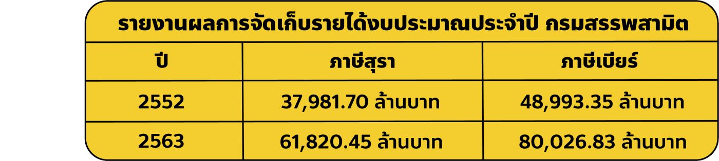 จากรายงานผลการจัดเก็บรายได้งบประมาณประจำปีของกรมสรรพสามิต หลังจากเริ่มบังคับใช้กฎหมาย พ.ร.บ.ควบคุมเครื่องดื่มแอลกอฮอล์ฯ รายงานประจำปี 2552 พบว่ารายได้จากการจัดเก็บภาษีสุราและเบียร์อยู่ที่ 37,981.70 ล้านบาท และ 48,993.35 ล้านบาท ตามลำดับ ซึ่งต่อมาก็เพิ่มขึ้นทุกปี จนกระทั่ง ปี 2563 ที่ผ่านมานี้ รายได้จากการจัดเก็บภาษีสุราและเบียร์อยู่ที่ 61,820.45 ล้านบาท และ 80,026.83 ล้านบาท ตามลำดับ ซึ่งตัวเลขดังกล่าวก็แสดงให้เห็นว่า ตั้งแต่มีการบังคับใช้กฎหมายมาสิบกว่าปี แนวโน้มของคนดื่มแอลกอฮอล์ไม่ได้ลดน้อยลง มีแต่จะบริโภคเพิ่มมากขึ้น (ยกเว้นปี 2560 ที่มีการปรับอัตราภาษี ทำให้ปีนั้นรายได้ลดลง)