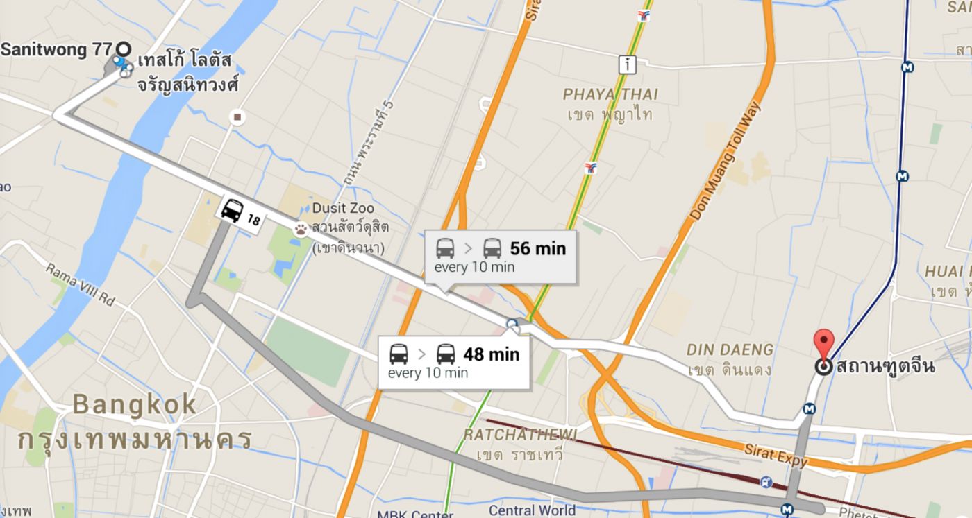 ลองดูเส้นทางที่รถสาย 18 ผ่าน ไปจนถึงรัชดามั่งดีกว่า ว่ามันเป็นอย่างไร โนะ