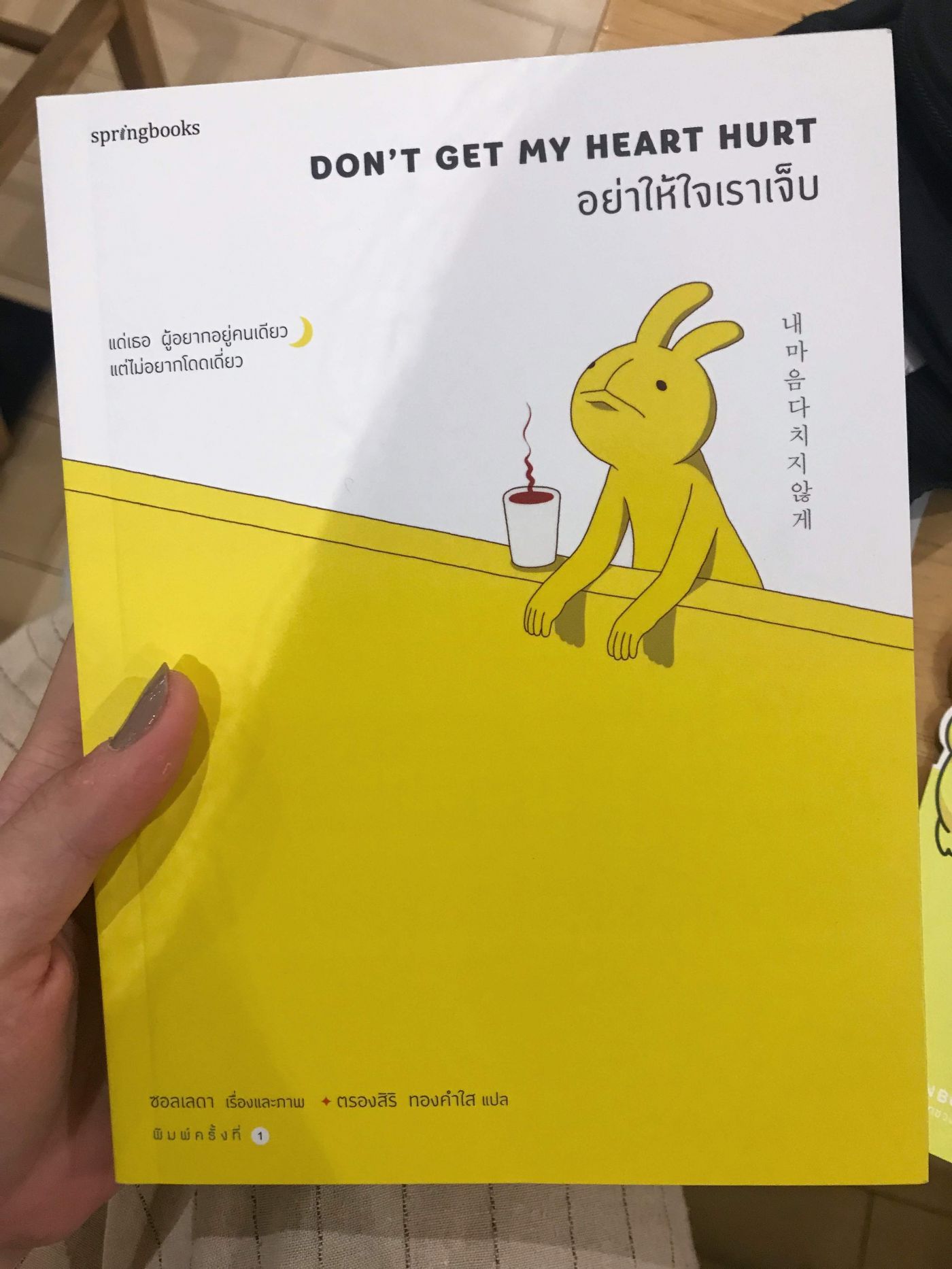 หนังสือเล่มนี้ทำให้เราสะดุดตาตั้งแต่หน้าปกสีเหลือง ที่มีกระต่ายเหงา ๆอยู่หนึ่งตัว พอเปิดเข้ามาด้านใน แม้ยังไม่ได้เริ่มอ่านเนื้อหาในเล่ม แต่คำนำสำนักพิมพ์ก็ยิ่งทำให้รู้สึกว่าหนังสือเล่มนี้น่าติดตามมากขึ้นไปอีก เป็นถ้อยคำธรรมดา แต่ทุกประโยคอ่านแล้วรู้สึกว่ามันช่างตรงกับชีวิต เหมือนคนเขียนมานั่งอยู่ในใจเรามากจริง ๆ