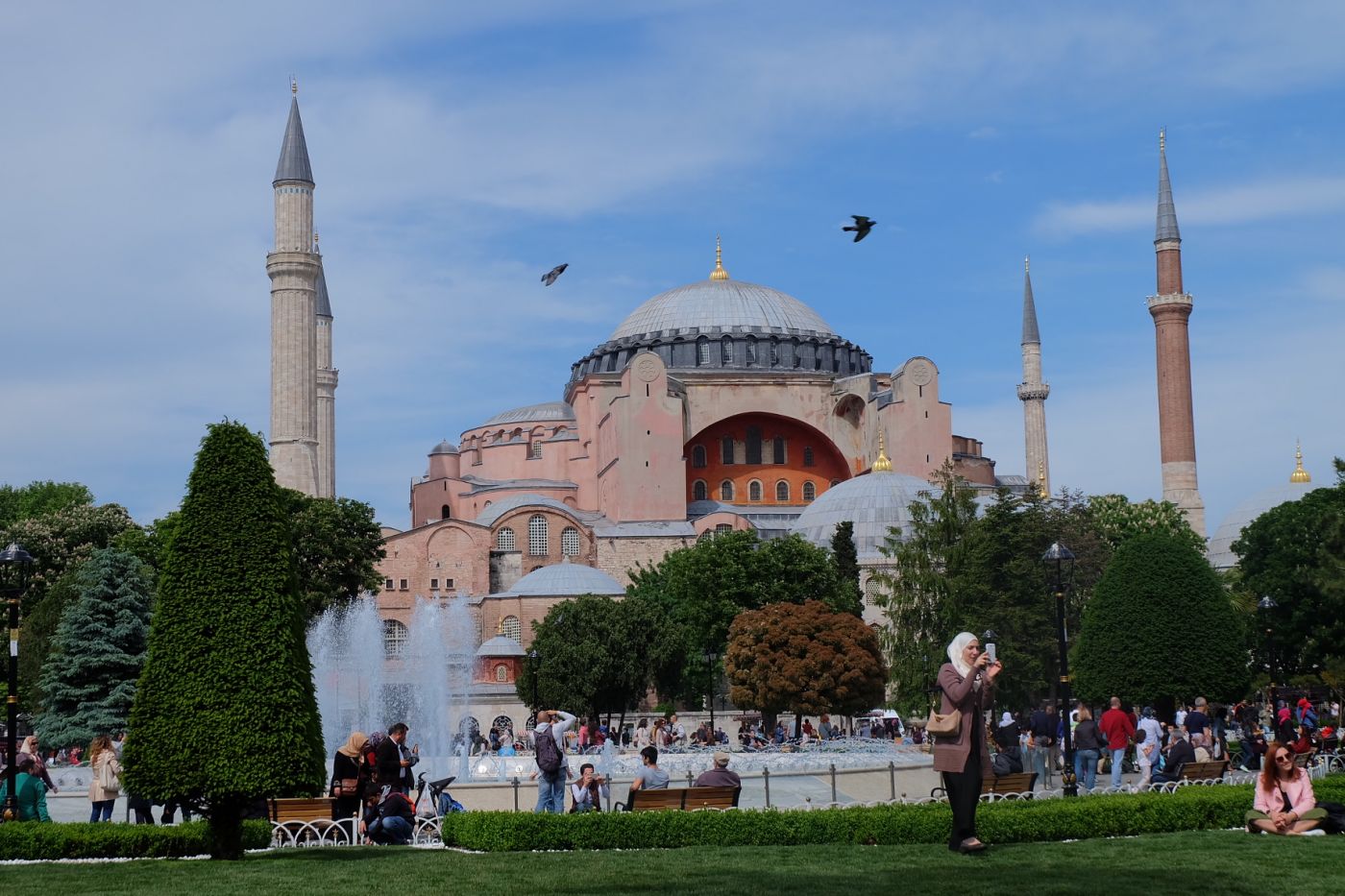 วิหารฮาเกียโซเฟีย หรือที่คนมักรู้จักในชื่อเซนต์โซเฟีย เดิมทีเคยเป็นโบสต์ของศาสนาคริสต์ ถูกสร้างขึ้นในสมัยของจักรพรรดิจัสติเนียนที่ 1 แห่งไบเซนไทน์ ซึ่งตั้งใจว่าจะสร้างให้เป็นโบสถ์ที่ยิ่งใหญ่และงดงามที่สุดเท่าที่เคยมีมา ต่อมาสุลต่านเมห์เหม็ดที่2 ได้สั่งให้ดัดแปลงเป็นสุเหร่าของอิสลามโดยทำการโบกปูนทับศิลปะเดิมไว้