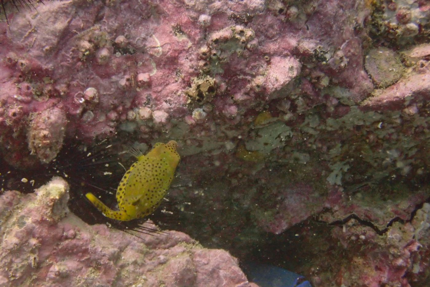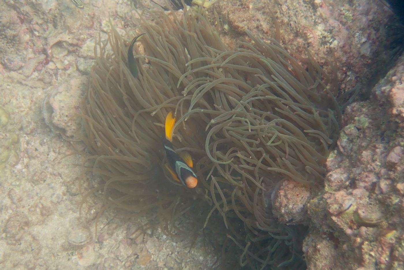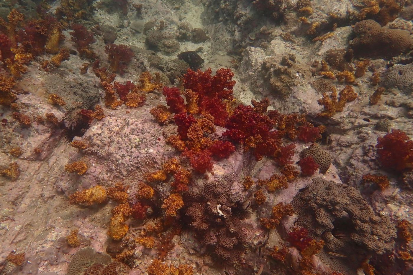 แรกเริ่มเดิมทีเราต้องนั่งเรือประมาณ 20 นาทีไปที่ Dibba Rock ซึ่งเป็นไดฟ์ไซต์ชื่อดังของที่นี่ เป็นจุดที่เจอปลานู้นปลานี้เยอะแยะ มีปะการังหลากหลายสวยงาม แต่ด้วยความที่สภาพทะเลเริ่มแปรปรวนเหมือนใจคนที่ปรวนเปร คลื่นเริ่มแรงขึ้นเรื่อยๆ เลยต้องย้ายมาที่ Three Rocks ที่อยู่ใกล้ชายฝั่งแทนค่ะ
