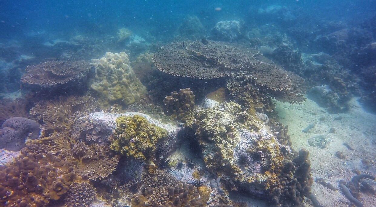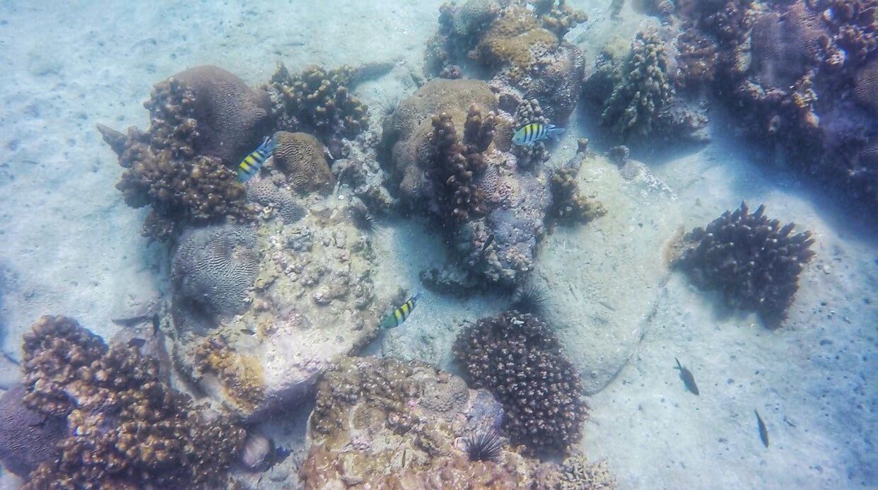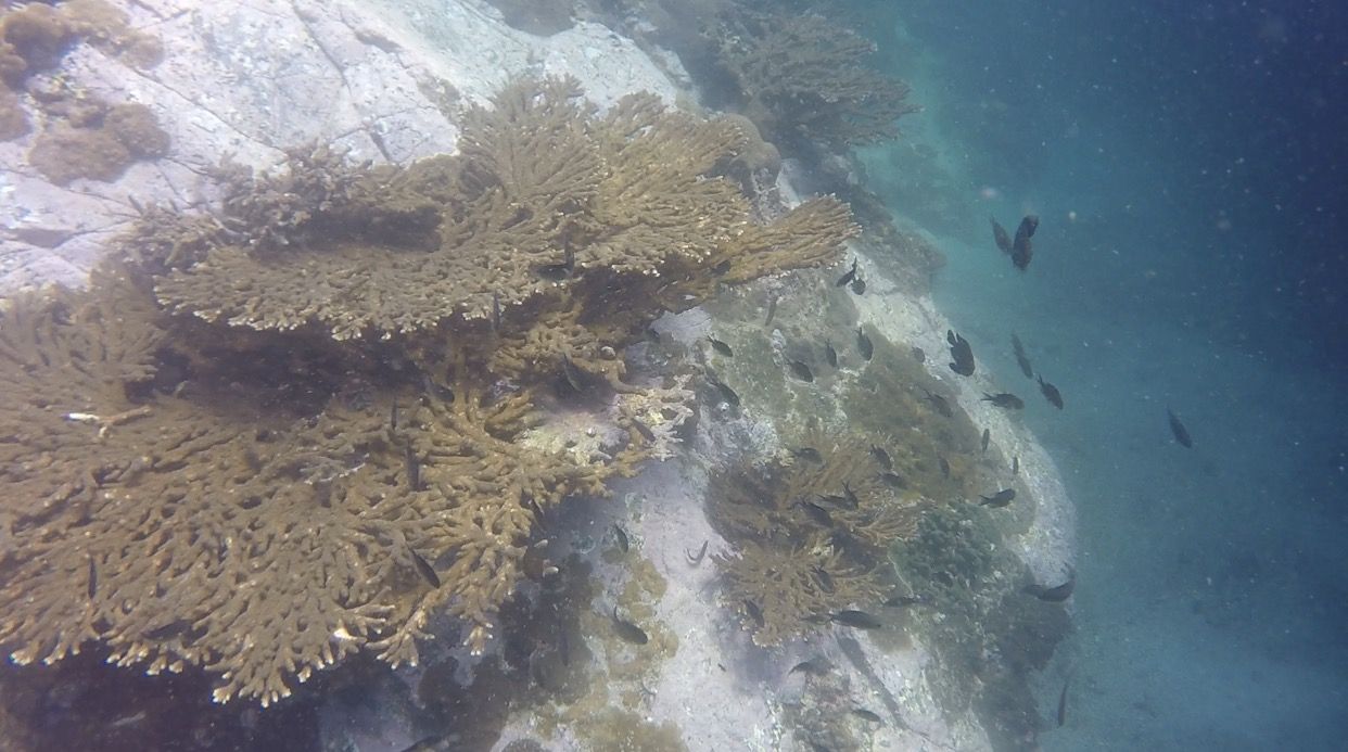 ในภาพนี้คือฝูงปลาที่เอาจริงๆ มองเองยังไม่เห็นเลย แต่ก็ถ่ายไปอย่างนั้นแหละ