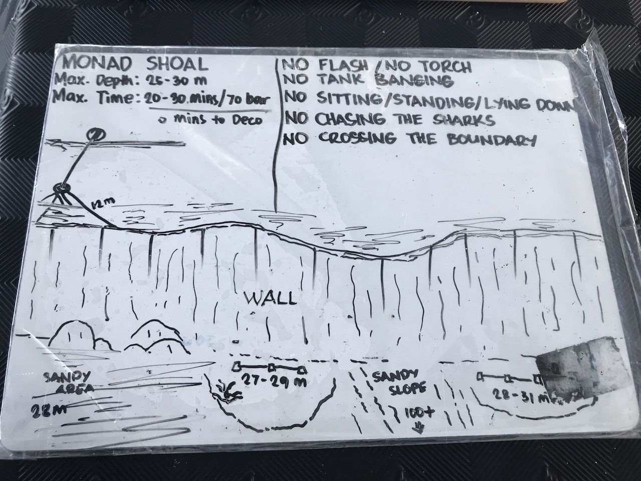 ก่อนลงไปเราก็ต้องมานั่งฟังไดฟ์หลีดบรีฟกันก่อนเกี่ยวกับกฎกติกามรรยาทและข้อควรระวังเกี่ยวกับการเฝ้าดูฉลาม โปรดดูภาพแผนที่ไดฟ์ไซต์ประกอบไปด้วยนะจ๊ะ