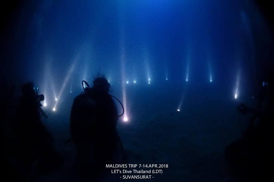 ถ้าแมนต้าแวะเวียนมาเที่ยวเล่น เราก็จะเอาไฟฉายลงไปปักที่พื้นทรายเป็นวงกลม แมนต้าก็จะวนมากินแพลงตอนและเราก็จะได้เห็นแมนต้าอย่างใกล้ชิดจ้ะ