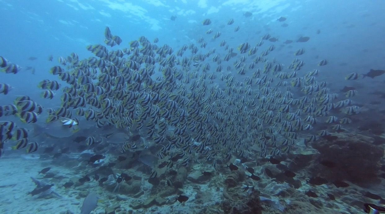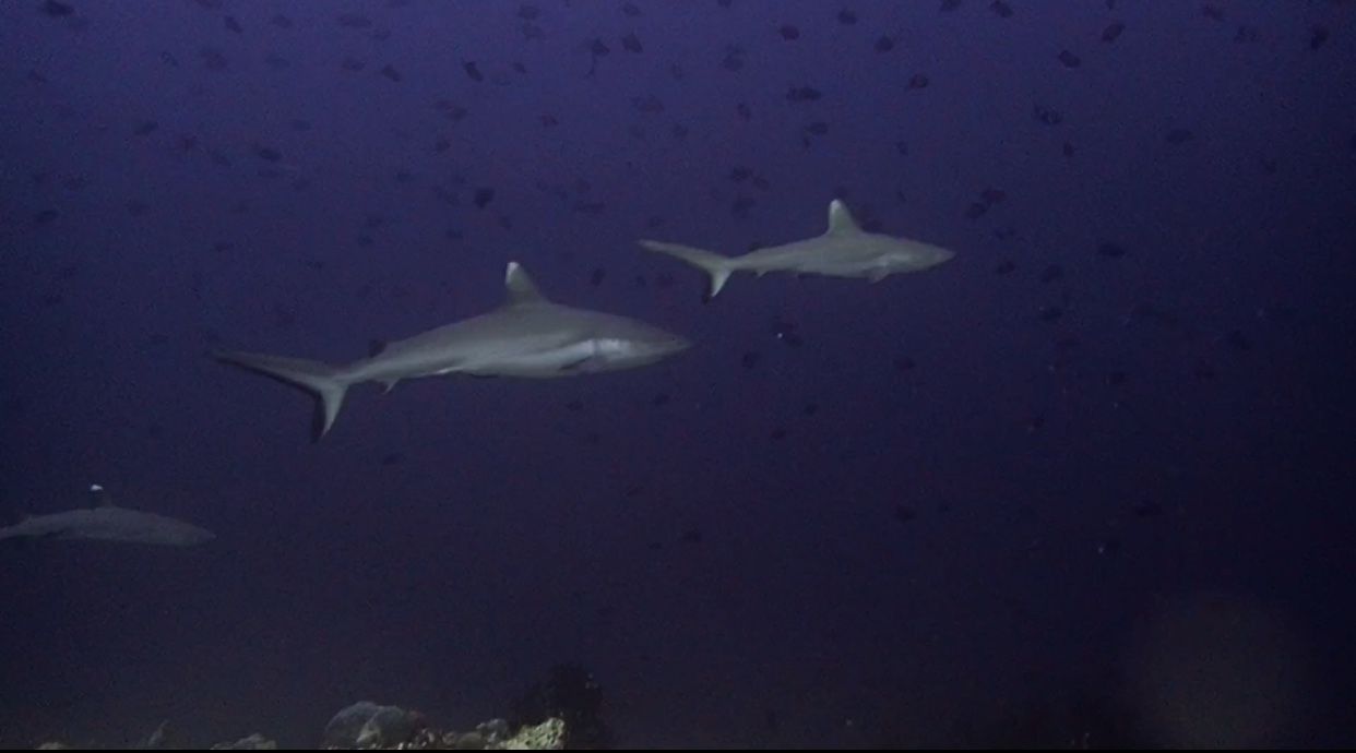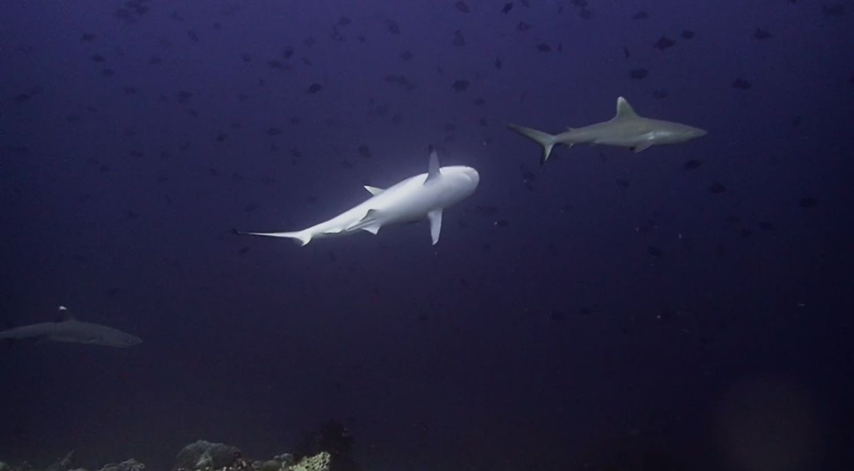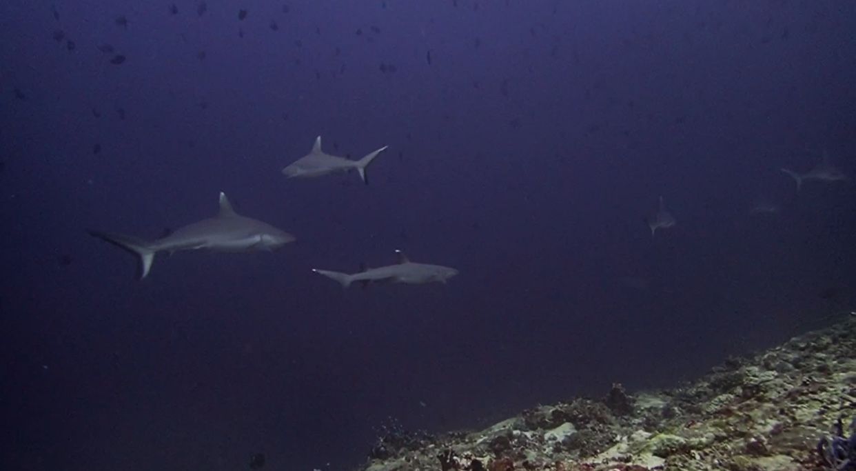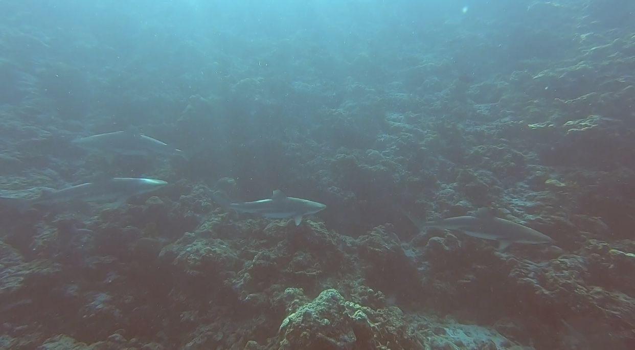 ความดีงามในไดฟ์นี้คือเจอฝูง Whitetip Reef Shark จ้าาาา น่ารักมาก ว่ายเรียงรายกันมาเป็นระเบียบเชียวล่ะ กุ๊กกิ๊กเหลือเกินนนน