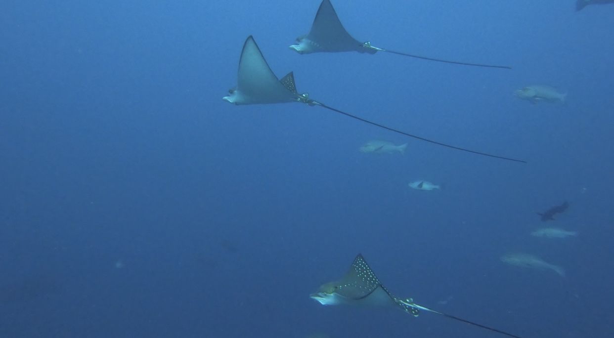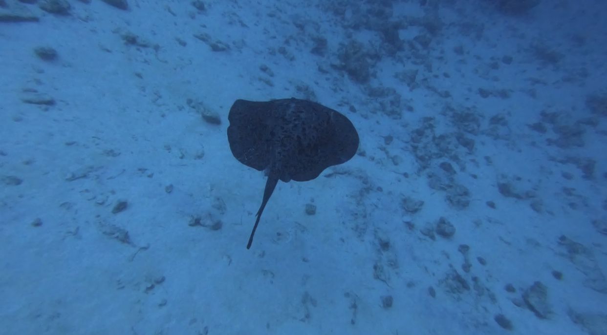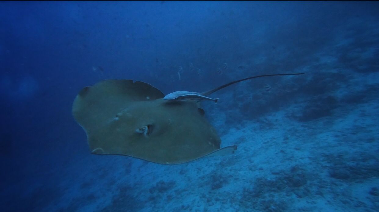 และระหว่างที่กำลังจ่อมจมอยู่กับความคิดตัวเอง มองดูอาณาจักรปะการังที่ล่มสลาย ชาร์มิลก็เคาะแท๊งก์และสัญญาณว่ากระเบนแล้วก็ชี้ๆๆๆๆๆๆๆๆๆขึ้นไป เรารีบเงยหน้าขึ้นไปมองก็พบกับ