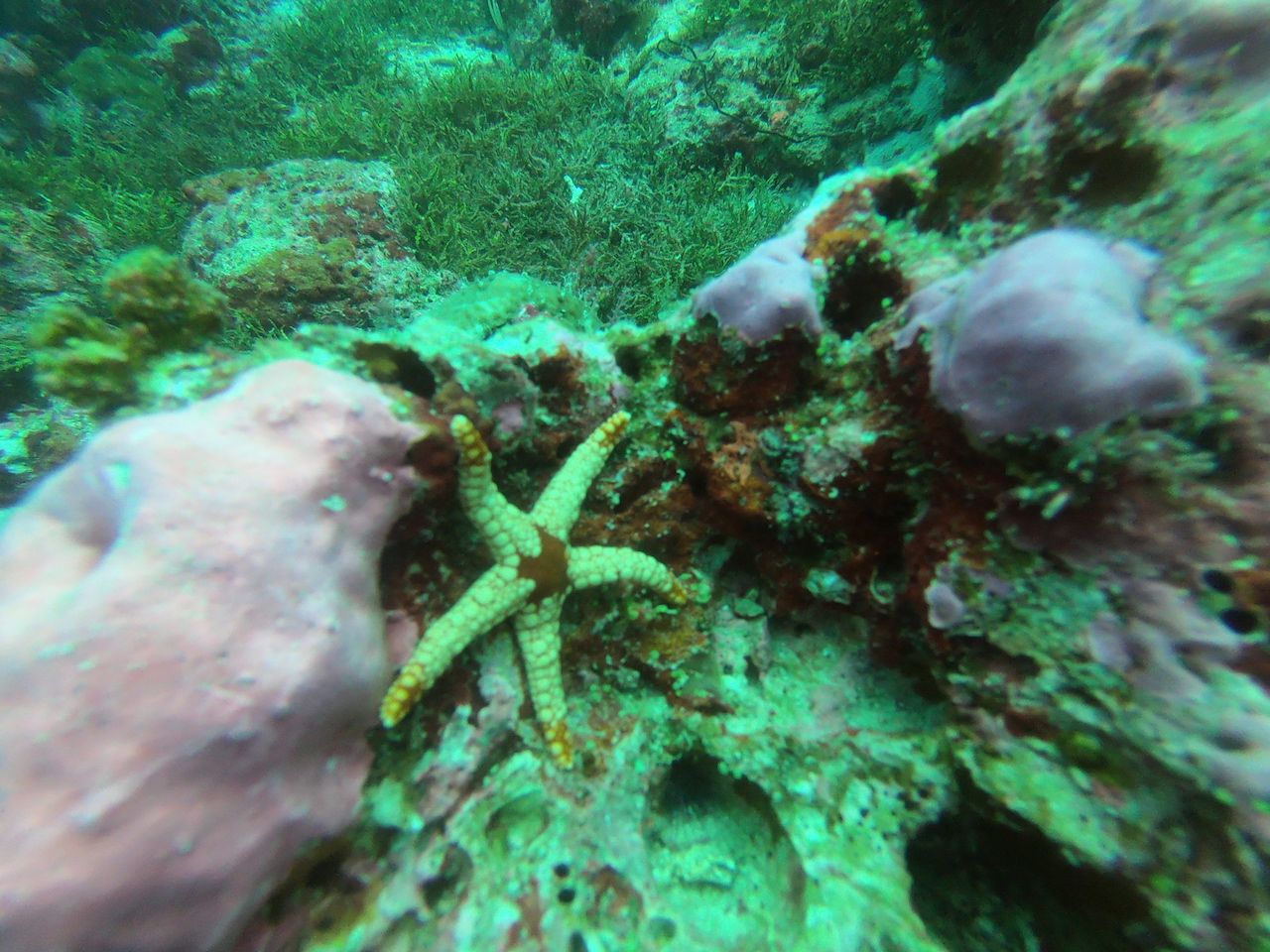 พอลงไปปุ๊บก็พอกระแสน้ำอีก ตั้งใช้ฮุคเกี่ยวกับหินซึ่งก็วุ่นวายอลเวงเช่นเคยเพราะนี่เป็นการใช้งานสิ่งนี้เป็นครั้งแรกในชีวิตตตต (อะไรมันจะครั้งแรกหลายๆรอบในไดฟ์เดียวว้า) ด้วยความกลัวว่าจะเกี่ยวไปโดนปะการังหรือปลาหินก็ต้องเอามือไปโบกๆก่อนว่ามีอะไรกระดุ๊กกระดิ๊กอยู่มั๊ย พอเกี่ยวแล้วก็หลุด ต้องหาจุดใหม่ที่ไฉไลกว่าเดิม กว่าจะอยู่นิ่งๆได้ก็ทุลักทุเลพอสมควร พอได้จุดที่ดีแล้ว เอ๊าาาา เปลี่ยนที่อีกโว้ยยยย