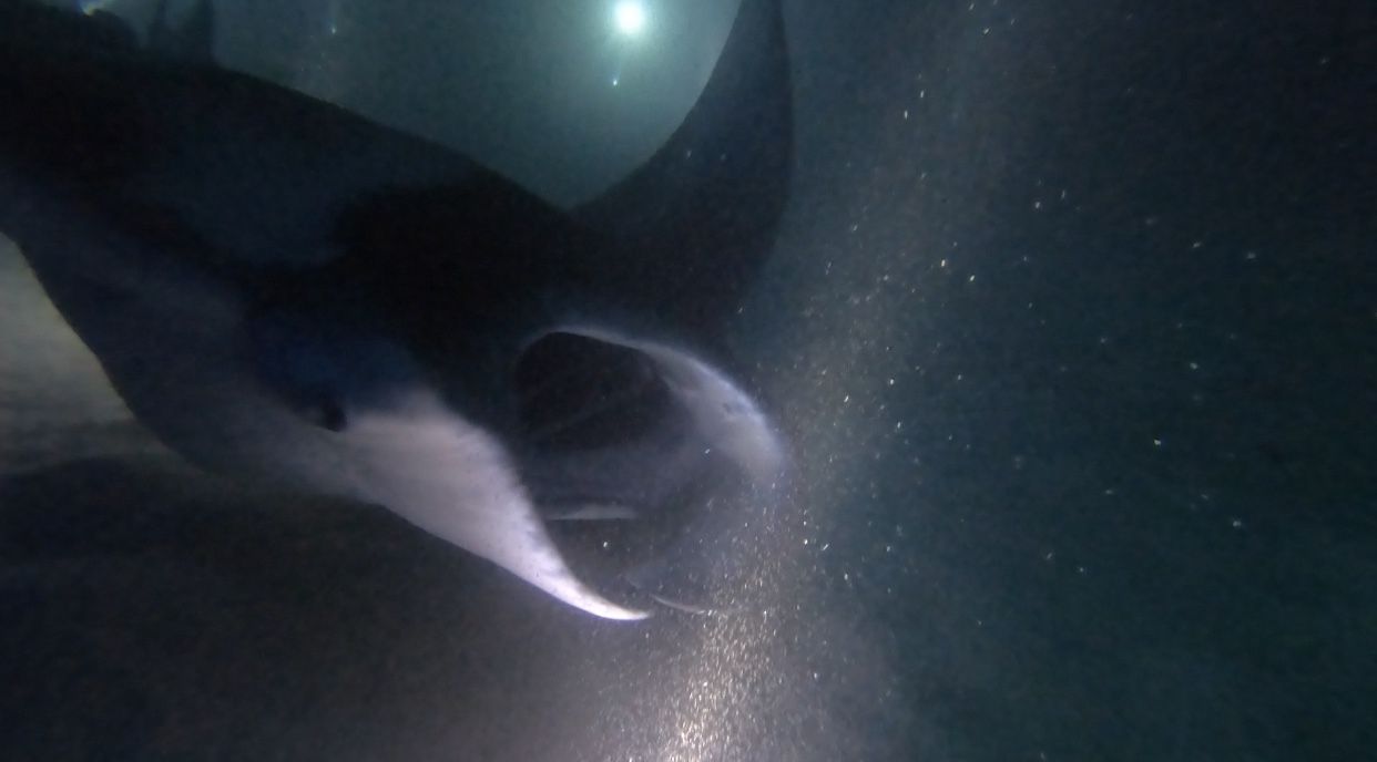 ไดฟ์นี้เรารอเวลากันจนถึงประมาณ 2 ทุ่ม กินข้าวเสร็จเรียบร้อยเราก็ออกไปสังเกตการณ์ที่ท้ายเรือ ปรากฎว่าแมนต้ามาจ้าาาา โอ้ย ดีใจมากกกก เรารีบพุ่งไปที่เรือ ต่ออุปกรณ์ เข้าชุดด้วยความไวที่ไม่คิดว่าตัวเองจะเร็วได้ถึงขนาดนี้ (ก็คนมันตื่นเต้นนน) พร้อมมากกกกกกกกกถึงมากกกกกกกที่สุดดดดดดด
