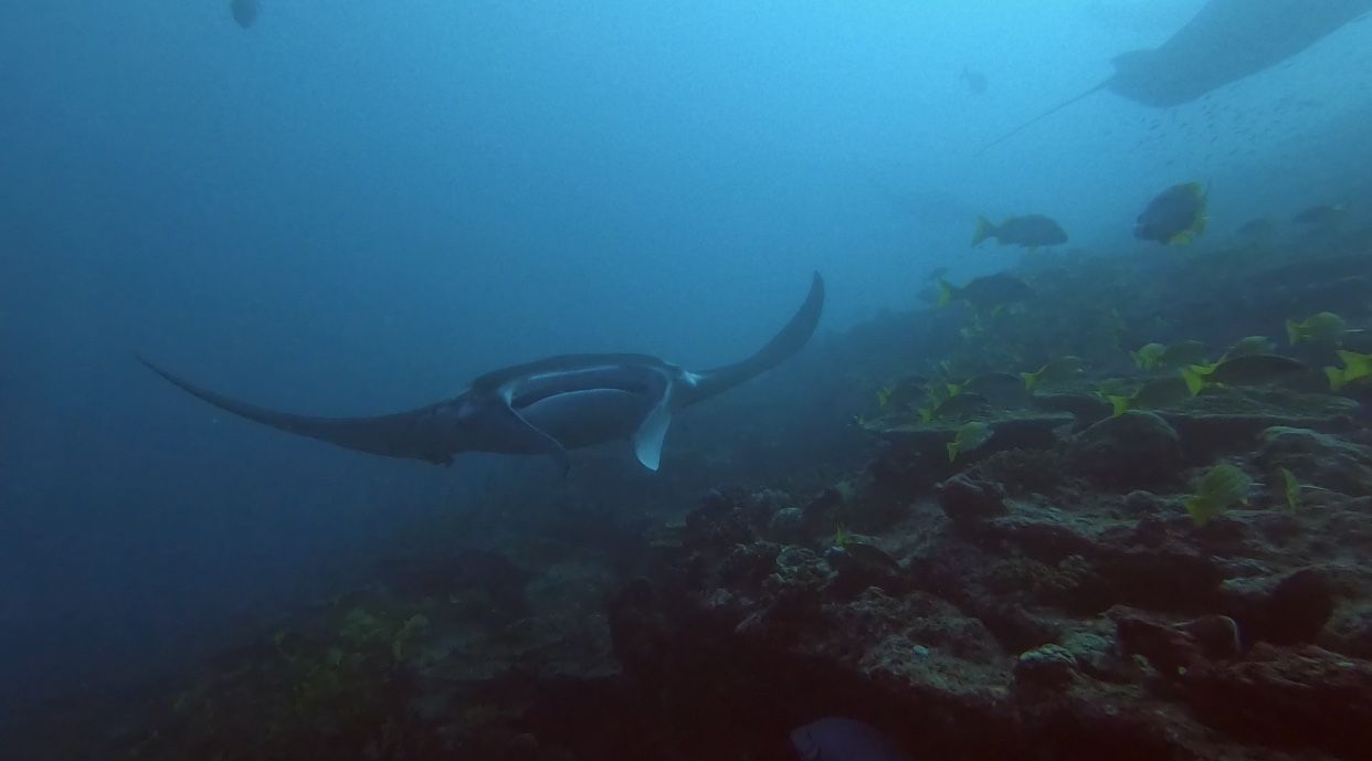 อย่างที่เราบอกไปว่าเราเป็นคนชอบกระเบน เราว่ามันน่ารักมุ้งมิ้งและพริ้วไหวเหมือนบินอยู่ในน้ำ และกระเบนที่เรารักมากที่สุด ชอบที่สุดก็คือแมนตา หรือกระเบนราหู ซึ่งเป็นกระเบนที่ใหญ่ที่สุดในโลก ใครอยากจะเจอน้องจุดก็เจอไปเถอะ เนี่ย อยากเจอตัวเนี้ย ที่มาเรียนดำน้ำก็เพราะว่าเจอตัวเป็นๆแบบนี้นี่แหละ โอ้ ชีวิตน้อยๆของข้าพเจ้าคอมพลีทไปอีกหนึ่งอย่างแล้ว