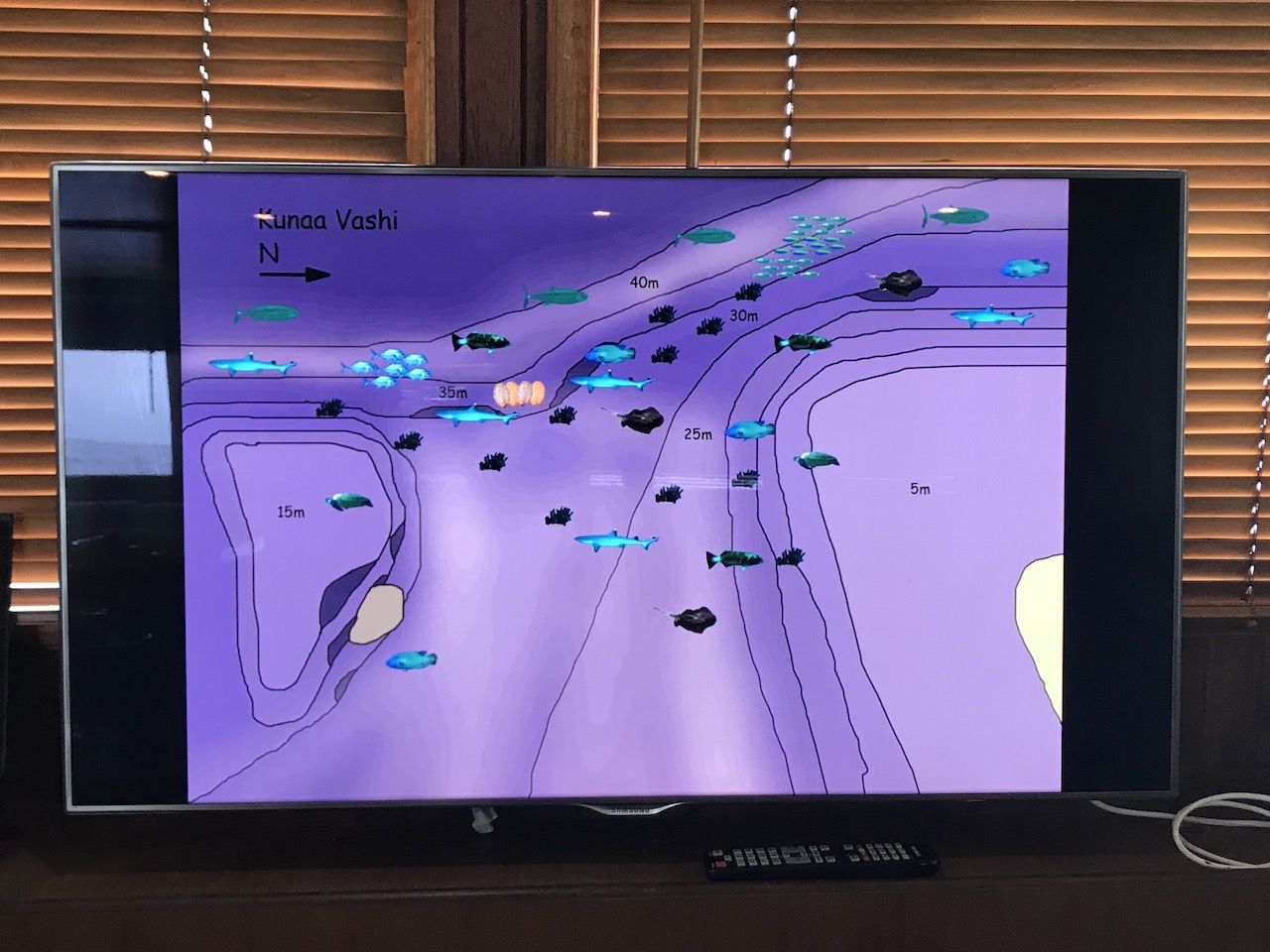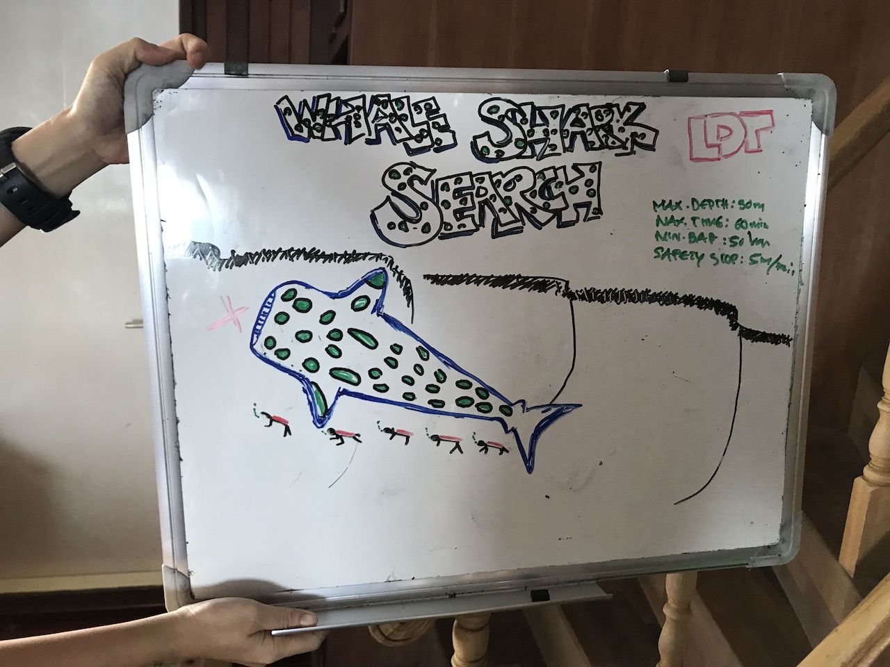 และแล้วเราก็เข้ามาสู่โหมดซีเรียสจริงจังกับการตามหา ฉลามวาฬแห่งน่านน้ำทะเลมัลดีฟส์ กันบ้าง ไดฟ์นี้เป็นไดฟ์ที่เราบรีฟกันอย่างจริงจังมากๆเพราะการตามหาน้องจุดนั้นมันไม่ใช่เรื่องง่าย น้องจะมา หรือไม่มา มันก็เป็นเรื่องของน้อง มนุษย์อย่างเราไปคาดการณ์กะเกณฑ์อะไรไม่ได้ (ไม่เหมือนที่ฟิลิปปินส์ที่ให้อาหารแล้วน้องก็อยู่ยั่งยืนยงไม่ไปไหน) เพราะฉะนั้นเราก็ต้องคิดวางแผนกันก่อนนิดนึง