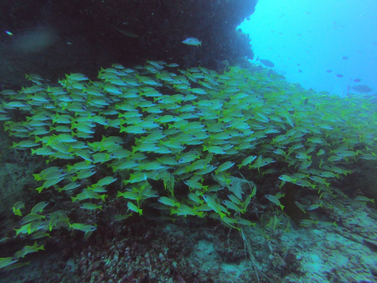 ชาร์มิลบอกว่าไดฟ์ไซต์นี้เป็นไดฟ์ไซต์ที่ทุกคนชอบมาก คนมาดำน้ำบุ๋งๆกันแถวนี้เยอะแยะ โดยเฉพาะนักดำน้ำเอเชียน (จริงๆคือพี่จีน) เพราะมีปลาข้างเหลืองอาศัยอยู่เยอะแยะเป็นฝูง งดงาม ตอนบรีฟนี่ก็มีความภาคภูมิใจมากจนเราเคลิ้มไปด้วยว่า เออ ลงไปมันก็คงสวยจริงๆแหละ อะไรที่ชาร์มิลบอกว่าดี เราก็ว่าดี อะ ลงก็ลงงงงงงง