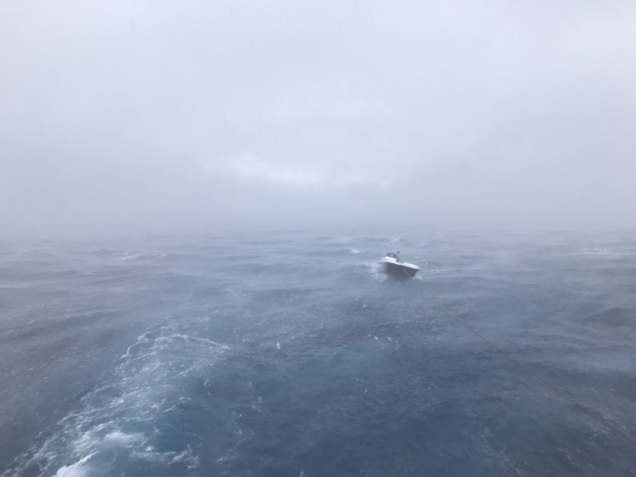 ระหว่างที่เรากำลังถ่ายโฟโต้ชูตกันอยู่ด้วยความเฟียสนั้น ฝนก็เทลงมา เทลงมา เทลงมาเฉยเลยจ้า พวกเราคิดว่าจะกลับไปที่เรือใหญ่แต่ก็ติดต่อใครไม่ได้ เป็นทีมคนติดเกาะ โบกไม้โบกมือกระโดดหย็องแหยงด้วยความหวังว่าคนบนเรือจะเห็นเรา พยายามโทรไลน์หาคนบนเรือให้มารับหน่อยก็ไม่มีใครรับสาย จนสุดท้ายต้องวานให้คนที่กำลังก่อกองทรายอยู่นั้นติดต่อเรือใหญ่ให้หน่อย