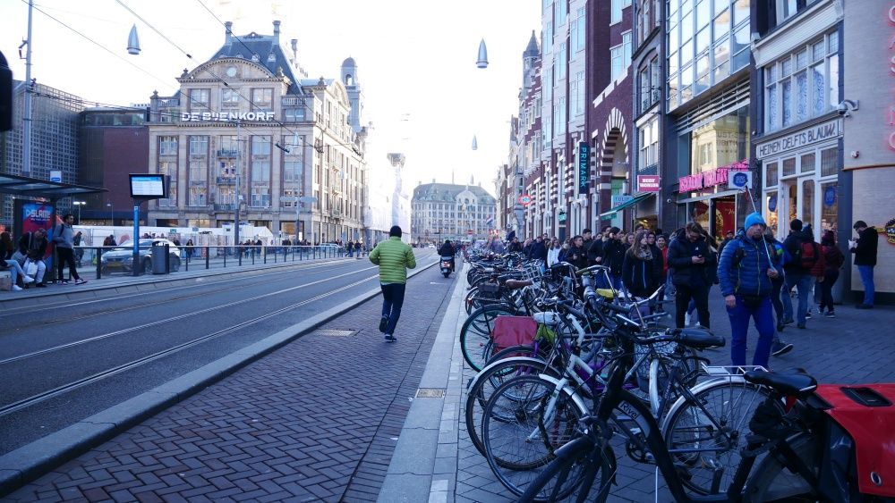 บรรยากาศในเมืองอัมสเตอร์ดัมเต็มไปด้วยรถจักรยานจอดเรียงรายกัน คิดว่าน่าจะเป็นหมื่นๆ คัน เพราะคนส่วนใหญ่ที่นี่นิยมปั่นจักรยานกัน