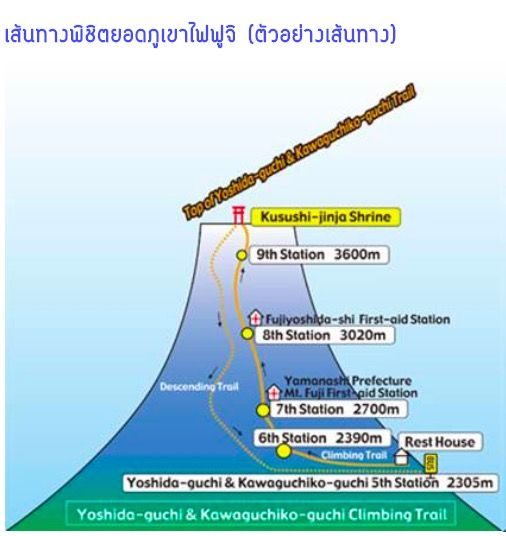 - ระยะเวลาขาขึ้น ตั้งแต่ 4 โมงเย็นถึงชั้น 9 ที่พัก ประมาณ 2-3 ทุ่ม พักผ่อน 6 ชั่วโมง เดินขึ้นต่ออีก 4 ชั่วโมง ขาลงประมาณ 5-6 ชั่วโมง