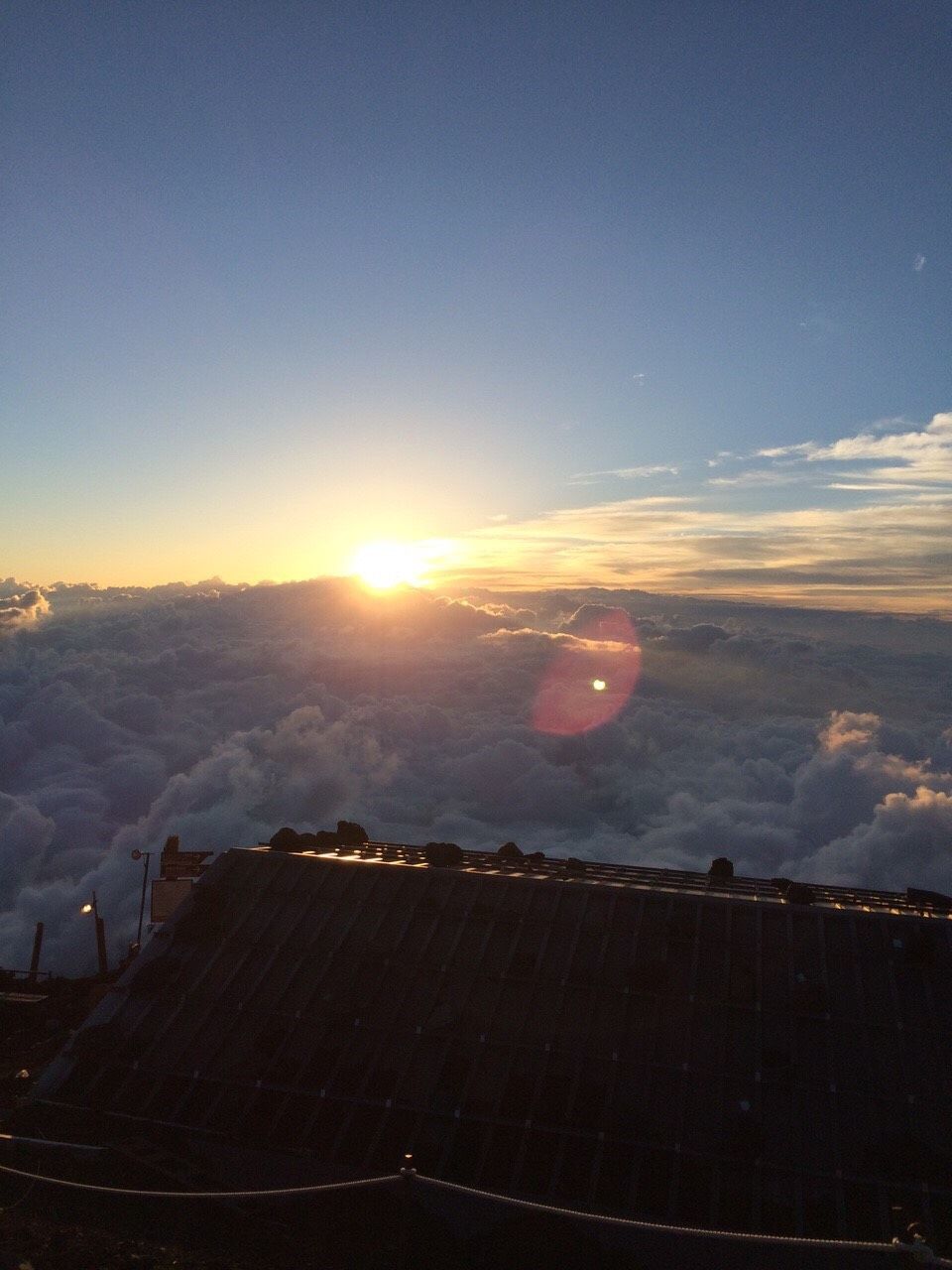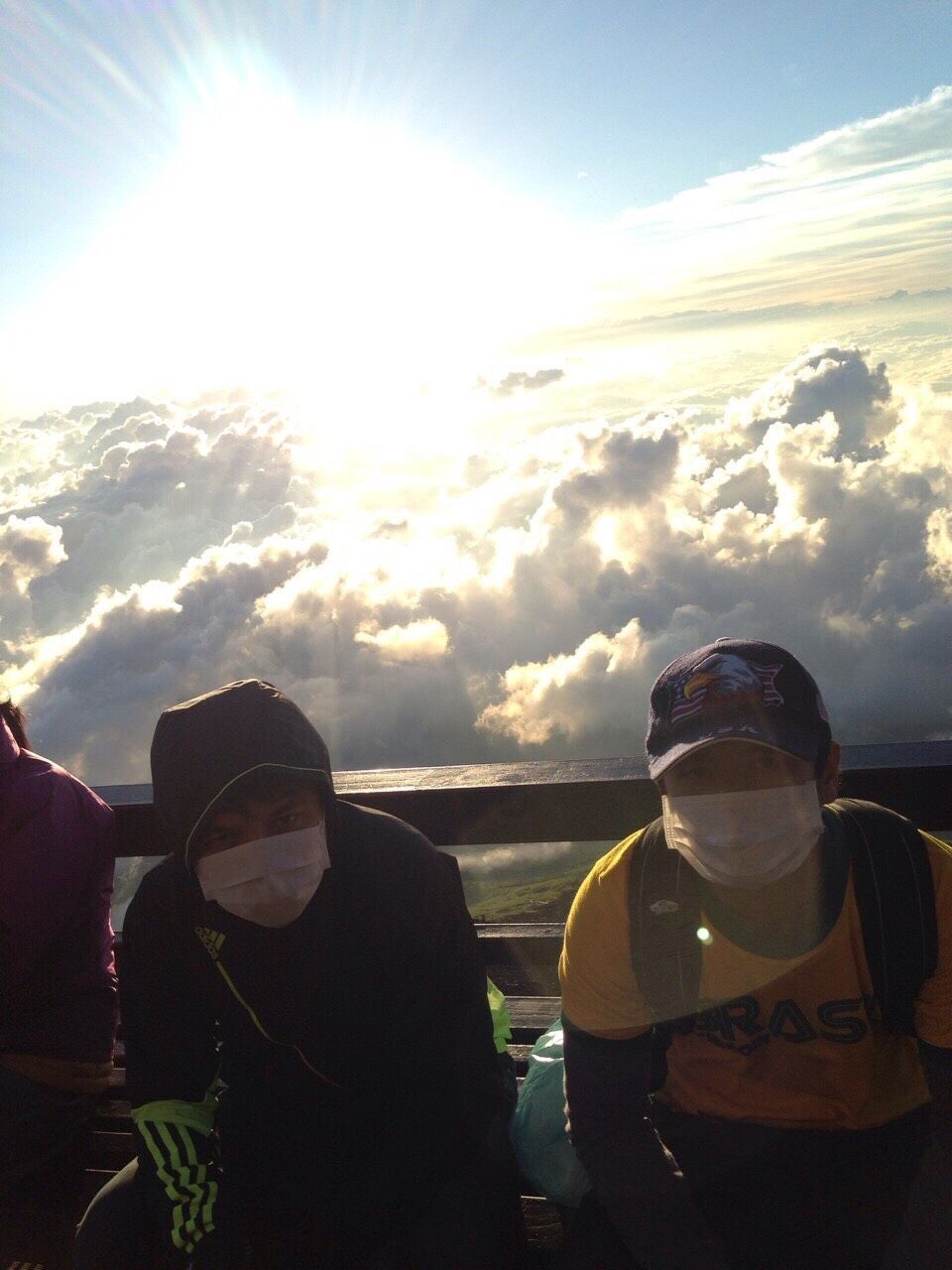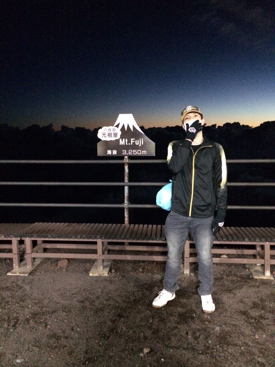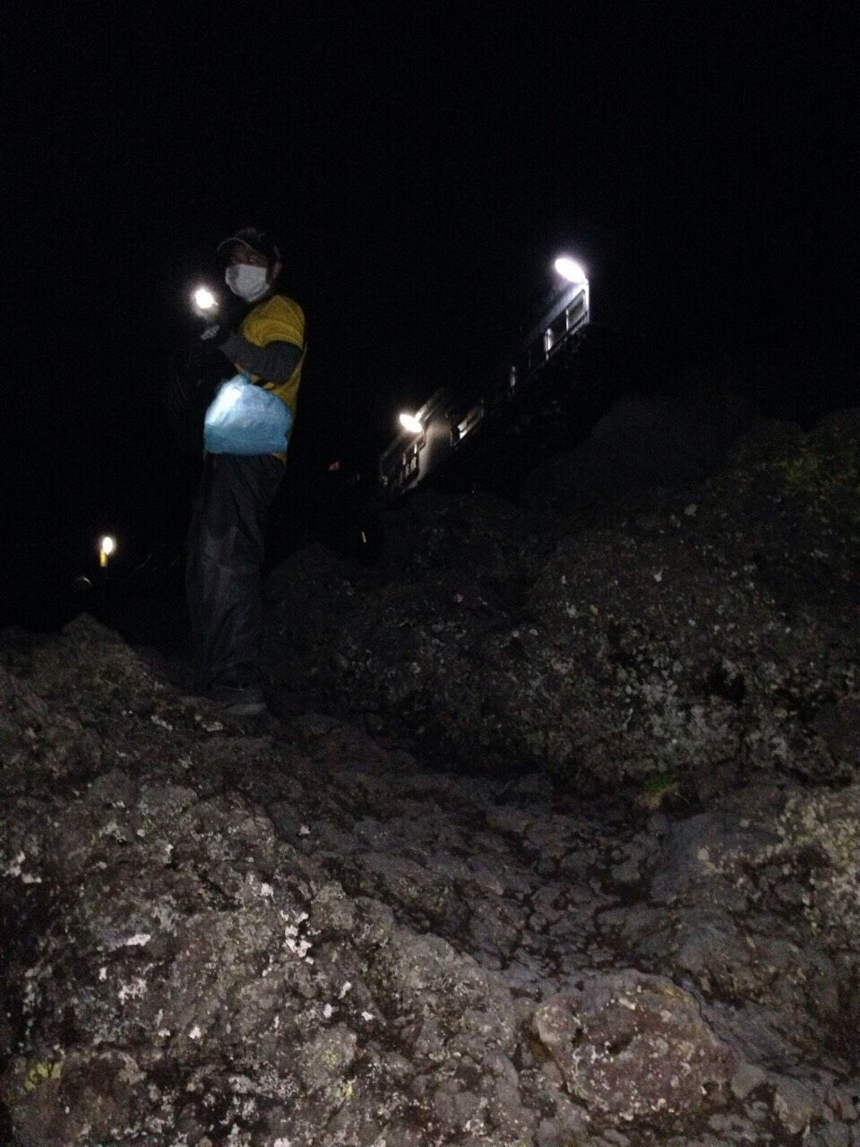 อีกประมาณ 200 เมตรเราก็จะถึงยอดเขาที่ตั้งใจไว้ แต่ด้วยพละกำลังตอนนี้ แค่ยกเท้าก้าวยังไม่ไหว เราจึงใช้วิธีเดินสามก้าวหยุด เดินสามก้าวหยุด แบบนี้ไปเรื่อยๆ ซึ่งความรู้สึกตอนนี้มันบอกไม่ถูก ไม่สามารถบรรยายได้ มันเหนื่อย มันล้า มันท้อ คำถามมากมายเกกิดขึ้นบนหัวของผม แต่ในที่สุด พวกเราก็สามารถฟันฝ่าความรู้สึก สภาพร่างกายที่ไร้กำลัง ฝืนพาตัวเองขึ้นมาถึงยอดภูเขาไฟฟูจิได้