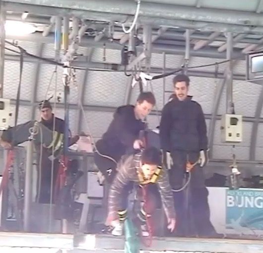 เจ้าหน้าที่นับอีก 1-2 and 3 เป็นครั้งที่สองผมก็ยังไม่ได้กระโดด จนตอนนี้ทุกคนเริ่มส่งเสียงมาที่ผม "come on bird come on bird you can do it" หลังจากคำนี้ผมตัดสินใจกระโดดลงไปทันที เมื่อปลายเท้าผมหลุดออกจากที่ยืน ความรู้สึกแรกมันคือความหวิว เสียวท้องไส้ เหมือนเวลาขับรถลงเนิน ภาพ ณ ตอนนี้มันเร็วมาก จำอะไรแทบไม่ได้ แต่ยืนยันว่าไม่ได้หลับตา ด้วยเวลาเพียงเสี้ยววินาทีตัวของผมก็ลงมาถึงปลายสุดด้านล่าง เชือกก็หดตัวลงตัวผมกระเด้งขึ้นลงๆ ความรู้สึกมันเหมือนได้ปลดปล่อยความกลัวต่างๆ ตัวของผมห้อยไปมาอยู่สักพัก ผมก็กระตุกเชือกที่ปลายเท้าเพื่อพลิกตัวกลับมาตำแหน่งเดิม