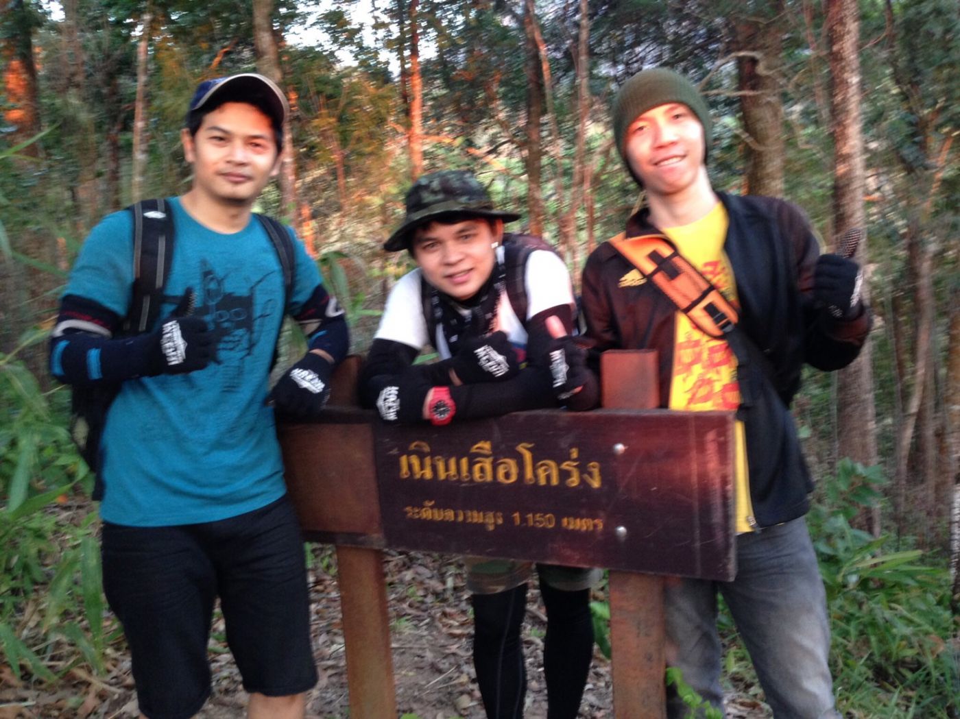 สังเกตสีหน้าเพื่อนแมน ไม่ต้องบอกกูรู้ว่าเราถูกปราบเซียนจริงๆ เราหยุดพักที่เนินปราบเซียนเพื่อมาเติมพลังงานกันสักหน่อย ใช้เวลาประมาณ 15 นาที จากเนินนี้เราเดินทางต่อไปเนินป่าก่อซึ่งระยะทางประมาณ 2,000 เมตร พวกเราเริ่มเดินช้าลงๆ ลูกหาบของเราเริ่มเดินห่างออกไปเรื่อยๆ จนมองไม่เห็น เราเดินกันไปเรื่อยๆ ตอนนี้บรรยากาศค่อนข้างเงียบ ได้ยินเสียงนกร้องตลอดทาง พวกเรารีบเดินอย่างไม่หยุดหย่อน ไม่มีใครพูดจาอะไรทั้งนั้น เพื่อให้ทันดวงอาทิตย์ก่อนจะลาลับขอบฟ้า เราผ่านเนินป่าก่อ ก็เดินมาเจอกับลูกหาบของเราที่ยืนรออยู่ เรามาหยุดพักที่เนินเสือโคร่ง