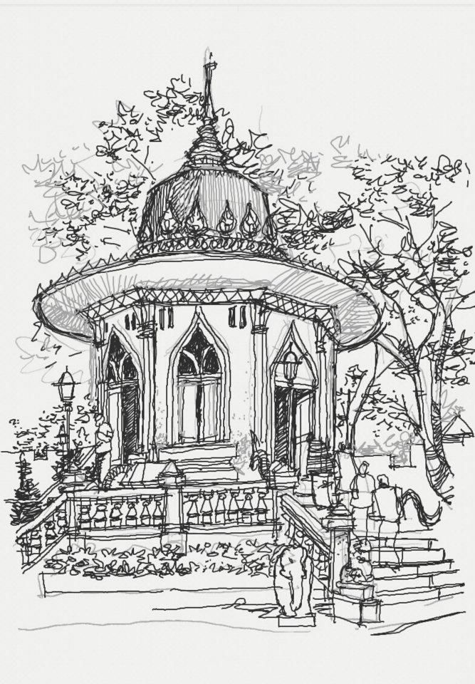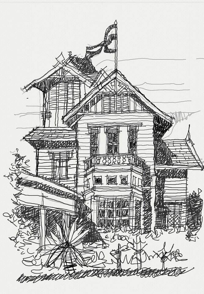 ก็ประมาณนี้ลายเส้นแบบหยาบๆเร็วๆ สนุกสนานกันไป ช่วงนั้นชีวิตเพลิดเพลินมากกับการหิ้วโน๊ตแล้วเขียนอะไรไปเรื่อยเปื่อย โดยเฉพาะอย่างยิ่งอาคารเก่าๆ ผมเป็นคนที่ใช้ชีวิตในจังหวัดจันทบุรี เพราะฉนั้นอาคารหลายๆหลังจึงถูกบันทึกไว้ในโน๊ต 1