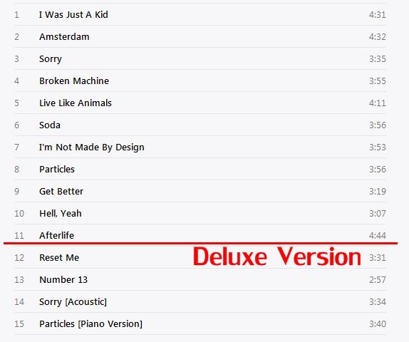 (แอบขาดไป 2 เพลงในแทร็คของ Deluxe Version คือ Reset Me กับ Number 13 ค่ะ เสียดาย._.)