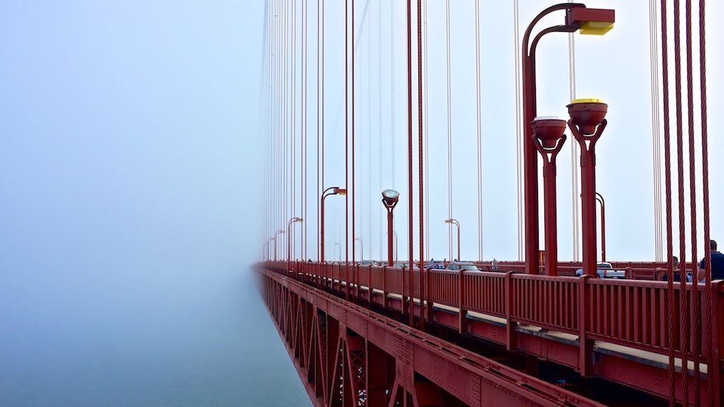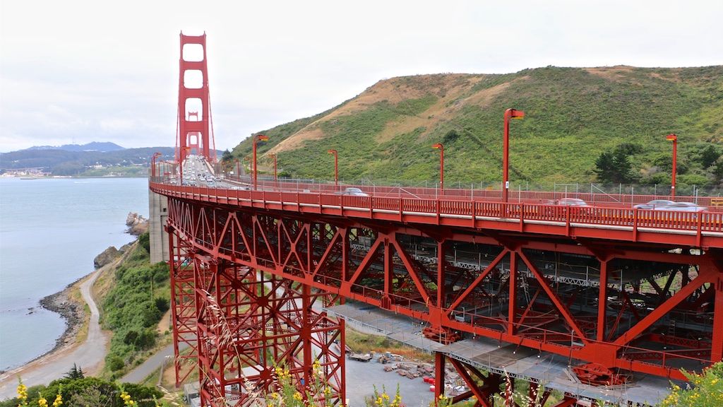 ออกจากมหาลัยแล้วมุ่งหน้าขึ้นเหนือต่อ ไปยังสะพานที่มีชื่อเสียงที่สุดและก็มีคนฆ่าตัวตายมากที่สุดในอเมริกาอีกด้วยและที่สุดในโลกด้วย (ส่วนอันดับ 2 นั้นคือป่าอาโอกิกาฮาระ ที่ประเทศญี่ปุ่น) ที่แห่งนั้นคือ Golden Gate Bridge เมื่อไปถึงจะมีที่จอดให้คนจอดรถถ่ายรูปแล้วก็เดินเล่นบนสะพานได้ จริงๆแล้วมีที่จอดให้ชมได้หลายมุม ถ้าอยากได้ภาพทั้งสะพานเลยแนะนำให้จอดฝั่งตรงข้างต้องขึ้นภูเขาไปหน่อยถึงจะได้ภาพทั้งสะพานแต่ข้อเสียคือไม่สามารถลงมาเดินเล่นบนสะพานได้ ในกรณีที่อยากจะชื่นชมบรรยากาศแบบใกล้ๆ นอกจากนี้ยังมีมุมด้านล่างแถวๆชายฝั่งก็สามารถถ่ายได้แต่ก็ไม่เคยไปเหมือนกัน ส่วนรอบนี้ซึ่งเป็นรอบแรกของผม ผมแค่ตาม GPS ไปและมันบอกให้จอดตรงที่จอดรถข้างสะพานก็เลยได้แต่รูปข้างสะพาน ถ้าถามผมว่าไปมุมไหนดี ผมก็จะถามคุณกลับว่าคุณอยากได้รูป หรือได้บรรยากาศหละ (ถ้าว่างมากก็ไปทั้งสองที่เลยก็ได้) ตอนไปถึงนั้นลมค่อนข้างแรง แล้วหมอกก็ลงพอสมควร สะพานก็โยกโครงเครงเชียวแต่ก็ถือว่าได้มาเดินเหยียบสะพานที่เป็นสัญลักษณ์ของ San Fransisco แล้ว ความคิดของผมนั้นที่นี่ห้ามพลาดโดยเด็ดขาดเพราะมันคือสัญลักษณ์ของ San Francisco ดังนั้นต้องมาที่นี่ให้ได้ เมื่อผู้คนพูดถึงเมืองนี้ หลายๆคนนึกถึงสะพานแห่งนี้เป็นอย่างแรก มากกว่า Pier 39 เสียอีก มิฉะนั้นห้ามพลาดเด็ดขาด ทริปนี้ของผมก็มาเมืองนี้แล้วตรงมา Golden Gate แค่นี้แล้วออกเลย แต่จริงๆแล้วเมืองนี้สวยมากและมีอะไรให้ทำอีกเยอะ ผมมาที่นี่อีก 3-4 รอบด้วยกันแล้วเที่ยวแทบหมดยกเว้น Alcatraz Island เพราะเวลาไม่พอต้องไปเมืองอื่นต่อด้วย หลังจากนั้นออกจากเมืองนี้หาที่พักทันที