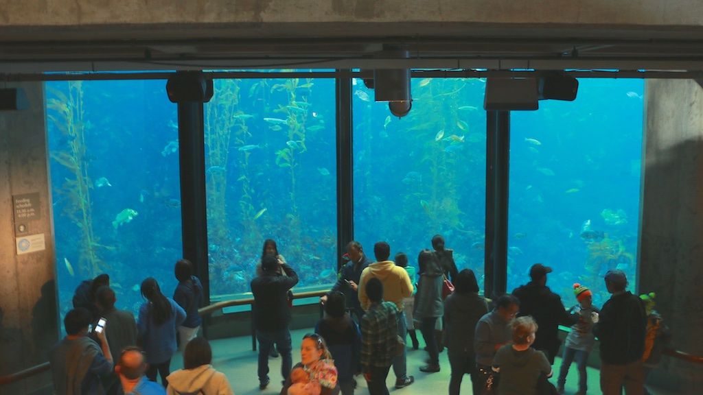 ที่ต่อไปนั้นคือ Monterey Bay Aquarium ไปถึงก็จอดรถข้างทาง แล้วเดินไป ตามทางก่อนถึงก็จะมีร้านขายอาหารทะเล พอเข้าไปถึงข้างในก็ซื้อตั่วก่อน ถึงจะเข้าได้ จะต้องบอกก่อนว่าที่นี่เป็นอควาเรียมที่ติดชายฝั่งไม่ได้ตั้งอยู่กลางเมือง คิดว่าเป็นไอเดียที่ดี เหมือนกับจับปลาจากทะเลแล้วปล่อยในอควาเรียมที่สร้างได้เลยทันที ที่นี่ค่อนข้างใหญ่มากและมีหลายโซนให้เดินชม มีหลายชั้น และมีแม้กระทั่งออกไปนอกอาคารเพื่อชมมหาสมุทรด้านนอกได้ด้วย บางครั้งก็จะมี Event ต่างๆ (แต่ต้องเช็คล่วงหน้าได้ที่เว็บไซด์) ด้านในอาคารจะมีให้ชมสัตว์น้ำ ปาการัง ส่วนด้านนอกอาคารจะเป็นการสอนดำน้ำ วิวมหาสมุทร ถ้าจะใช้เวลาเดินชมอย่างละเอียดเผลอๆสิงอยู่ได้ทั้งวัน ส่วนไฮไลท์ที่นี่คงจะเป็นอควาเรียมที่ใหญ่ที่สุดในอาคาร กินเนื้อที่ไป 2-3 ชั้นได้ ข้างในจะมืดและมีปลาต่างๆ เหมือนนั่งตู้ปลายักษ์ก็เป็นได้ นอกจากปลา ยังมีเพนกวิน นก และสัตว์น้ำชนิดอื่นๆ อีกด้วย ดังนั้นที่นี่ถือเป็นอีกที่ ที่ไม่ควรพลาด โดยเฉพาะคนที่ไม่เคยมีประสบการณ์ชมอควาเรียมสวยๆ (หรืออาจเคยเห็นแค่ที่เล็กๆ) นี่ห้ามพลาดเลย สรุปคือ ถ้ามาขับรถเที่ยวเส้น 101 ก็ควรแวะชมที่นี่ด้วย