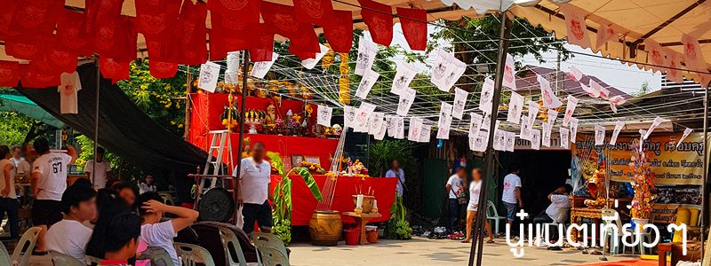 เดินเข้าไปภายในวัด ก็งงๆ ว่าจะต้องไปไหว้พระที่ไหนก็เจอศาลาหนึ่งเห็นมีรูปเคารพก็ไม่แน่ใจเลยเดินเข้าไปอีกและเลี้ยวข้างโบสถ์ก็เจอปะรำพิธีไหว้พ่อแก่ พ่อปู่ฤาษี มีคนนั่งทำพิธีกันอยู่ เราเลยเดินเข้าไปดูและถ่ายภาพก่อนเดินกลับย้อนออกมา