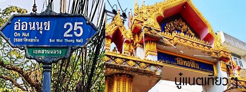เดินต่อไปอีก 6 - 7 นาทีก็มาถึงซอยอ่อนนุช 25 ซึ่งเป็นที่ตั้งของ "วัดทองใน" ซึ่งเหมือนต้องเดินเข้าซอยไปอีก ไม่ใช่เดินผ่านซุ้มประตูวัดและจะถึงวัดเลย
