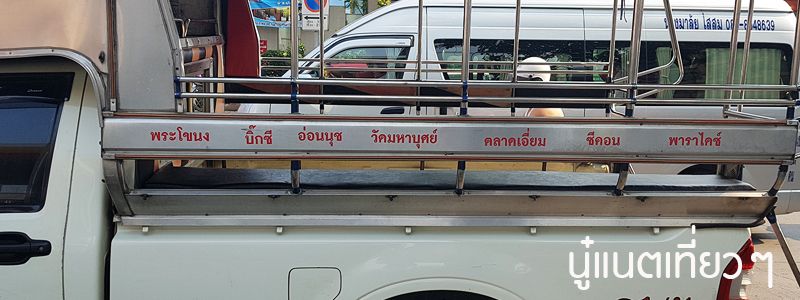 รถเมล์แล่นไปเรื่อยๆ ก็รถติดตั้งแต่เขตบ้านที่อยู่ไปจนถึงเส้นศรีนครินทร์ ก็คิดว่าความจริงถามว่าไกลไหมก็ไม่เชิงว่าไกลมาก แต่เพราะรถติด ใช้เวลาบนรถนานเลยเหมือนไกล พอรถเลี้ยวเข้าถนนเส้นซอยอ่อนนุช เราก็ส่องไปเรื่อยๆ ว่าถึงรึยัง ก็ผ่านป้ายวัดที่เราต้องเข้าไปไหว้ขอพรวันนี้หลายวัด แต่เราจะไปเริ่มที่ซอยอ่อนนุช 3 แล้วไล่ลงมาตามทางเรื่อยๆ ตอนดูในกระทู้เห็นชื่อซอยก็คิดว่าไม่ไกลจากกันมาก แต่พอนั่งรถเมล์ผ่าน บางซอยก็ไม่ไกลกันมาก แต่บางซอยก็ทิ้งห่างเลย ก็ต้องดูอีกทีว่าจะเดินหรือสองแถว