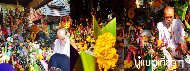 ได้บายศรีที่ต้องการแล้วก็เดินข้ามทางเดินพญานาคมาต่อแถวที่ศาลา "พ่อปู่ศรีสุทโธ แม่ย่าศรีปทุมมา" ซึ่งแถวยาวและมีหลายแถว ทำพิธีกันเป็นรอบๆ