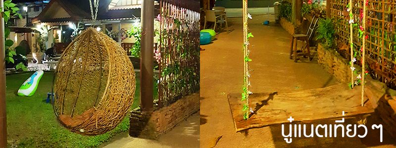 ด้านหน้าห้องก็มีชิงช้าและเก้าอี้หวายแบบแขวนรูปไข่ น่านั่งเล่นมาก