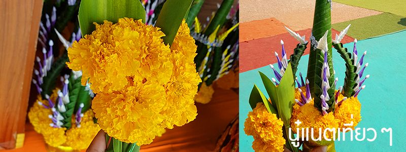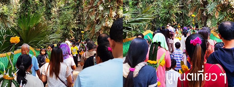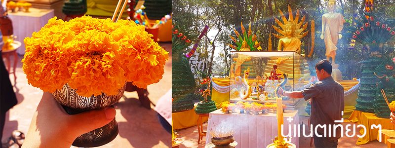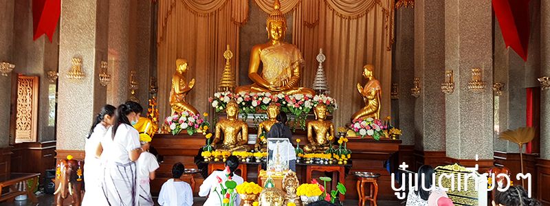 ก็ไปทำบุญพระไตรจีวร เดินวน 3 รอบรอบองค์พระ ก่อนมานั่งอธิษฐานจิตขอพรต่อหน้าองค์พระ