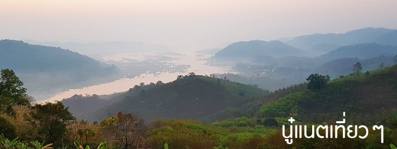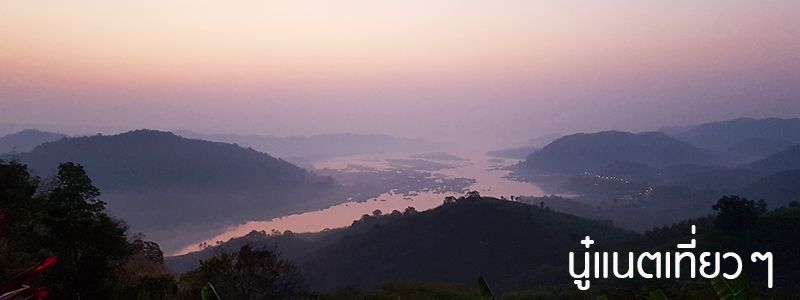 มาถึงลานจอดรถอีแต๋นก็ประมาณ 6.30 น. ก็ขึ้นรถกลับที่พัก อากาศดีมากจนต้องเปิดหน้าต่างให้ลมพัดเข้ามา ระหว่างทางก็แวะชมวิวริมแม่น้ำโขง ถ่ายรูปกันสักนิดนึง วิวสวยๆ ในบรรยากาศเช้าๆ