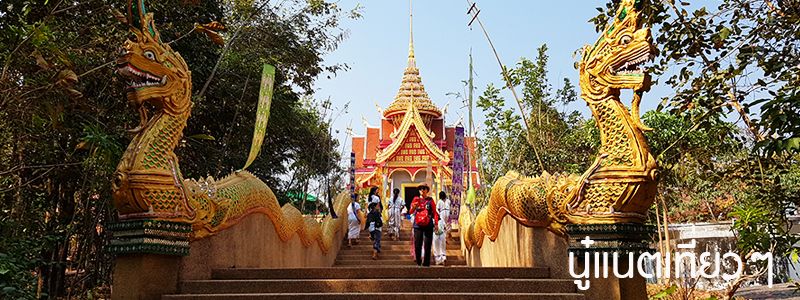 สถานที่ต่อไปคือ "วัดผาตากเสื้อ" ที่มี skywalk ตอนมาถึงที่วัด รถจอดเยอะมากเหมือนวันนี้มีพิธีอะไรด้วย มีโต๊ะที่เขาจัดแจกน้ำและอาหารฟรี เราก็แยกย้ายกันเดิน เพราะเราก็ชิลๆ ของเราคนเดียวสบายมาก จุดที่เราสนใจจะไปคือ skywalk แต่ระหว่างทางก็ผ่านองค์พระปางนาคปรกเลยไหว้พระก่อน