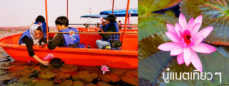 พอประมาณ 6.30 น. ฟ้าสว่าง เราก็ออกเดินทางกันต่อ จนประมาณ 8โมงเศษก็มาถึง "ทะเลบัวแดง" ลงเรือเที่ยวชมธรรมชาติกัน