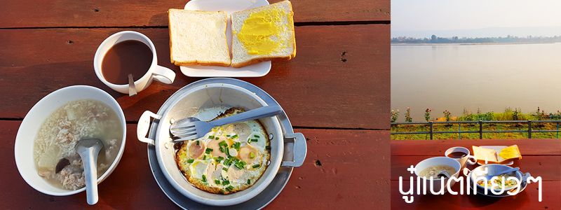 กลับมาถึงที่พักตอน 8 โมงก็มาทานอาหารเช้ากัน พิเศษคือฟ้าสว่างแล้ว ตอนนี้ก็ถึงเวลานั่งชิล ทานอาหารเช้าไปชิมวิวไป อาหารเช้าก็บุฟเฟ่ต์ ก็มีไข่ดาว ข้าวต้ม ขนมปังปิ้ง แบบมื้อเช้าตามที่พักทั่วไป