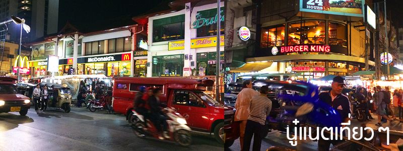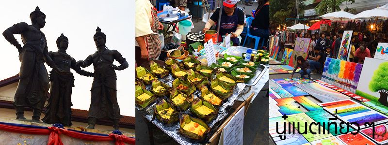 ตอนเก็บของเสร็จก็บ่ายสาม นอนเล่นคือชาร์จแบตมือถือนั่นแหละ พอ 5 โมงเย็นก็ออกไปสำรวจรอบๆ ที่พักใกล้อนุสาวรีย์สามกษัตริย์และมีตลาดกลางคืนด้วยกำลังเริ่มคึกคักพอดี จะได้มีที่ไว้เดินเล่นฆ่าเวลาก่อนนอน