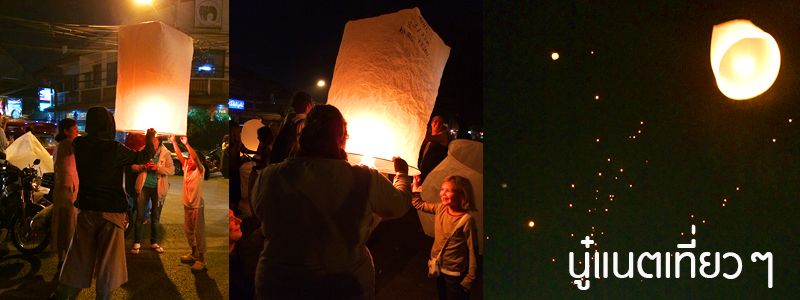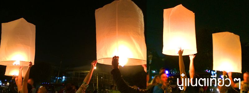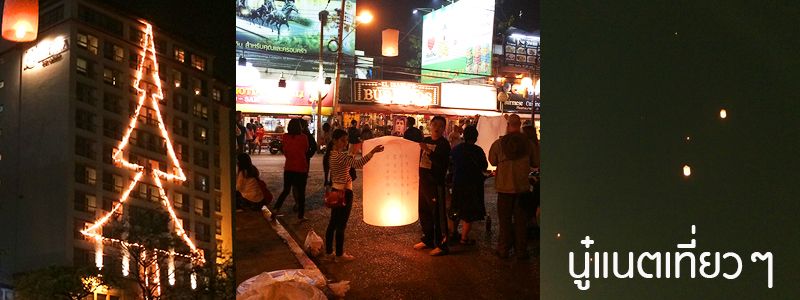 ไปด้อมๆ มองๆ อยู่แถวเวที แล้วก็ออกไปเดินดูรอบๆ คนเยอะคึกคัก มาคนเดียวก็เดินปะปนผู้คนไปเรื่อยๆ รถก็เยอะ โคมลอยก็สว่างลิบๆ อยู่บนฟ้าเป็นสาย