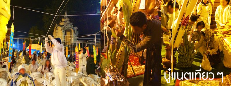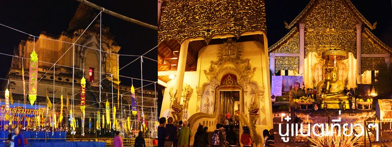 อยู่ที่ประตูท่าแพถึงประมาณเกือบ 3 ทุ่มก็เดินเตร็ดเตร่กลับไปวัดที่ตั้งใจจะสวดมนตร์ข้ามปี เดินมาดูตรงแถวเก้าอี้ที่เขาจัดวางไว้ คนเพียบแต่ก็ได้จองที่นั่งเอาไว้แล้ว ขณะยังไม่เริ่มพิธีก็เดินถ่ายภาพเล่นบริเวณวัดไปเรื่อยๆ