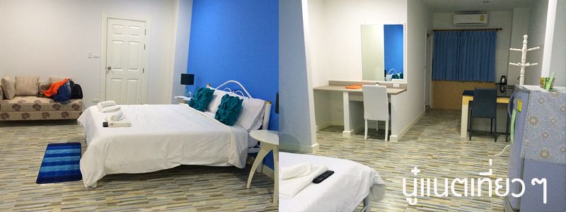 เข้าห้องมาคือห้องใหญ่และสวยดี มีที่นั่งทานข้าวและอ่างล้างจานในห้องด้วย และมีโซฟายาว 1 ตัว ห้องน้ำก็สวยดีแหละ