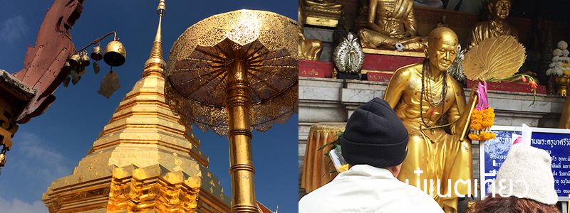 ตอนเช้าตื่นมาทานข้าวเช้า แล้วเผอิญไปได้ยินผู้หญิงคนหนึ่งพูดกับสามีเขาเรื่องไปดอยสุเทพ อาศัยความหนาของหน้าและสองมือที่ยกมือไหว้ เดินเข้าไปขอติดรถไปดอยสุเทพด้วย สองคนสามีภรรยาก็มองหน้ากัน เขามีลูกสาวตัวเล็กๆ คนหนึ่งด้วย แต่สุดท้ายก็ตกลง เราเลยได้รถขึ้นไปดอยสุเทพ แต่ระหว่างทางเขาก็แวะไปหาเพื่อนเขาอีกโรงแรมหนึ่ง พอถึงดอยสุเทพ เราก็ยกมือไหว้เขาที่ให้ติดรถมาด้วย และออกเดินทางต่อไปของเรา เข้าไปบริเวณพระธาตุดอยสุเทพ